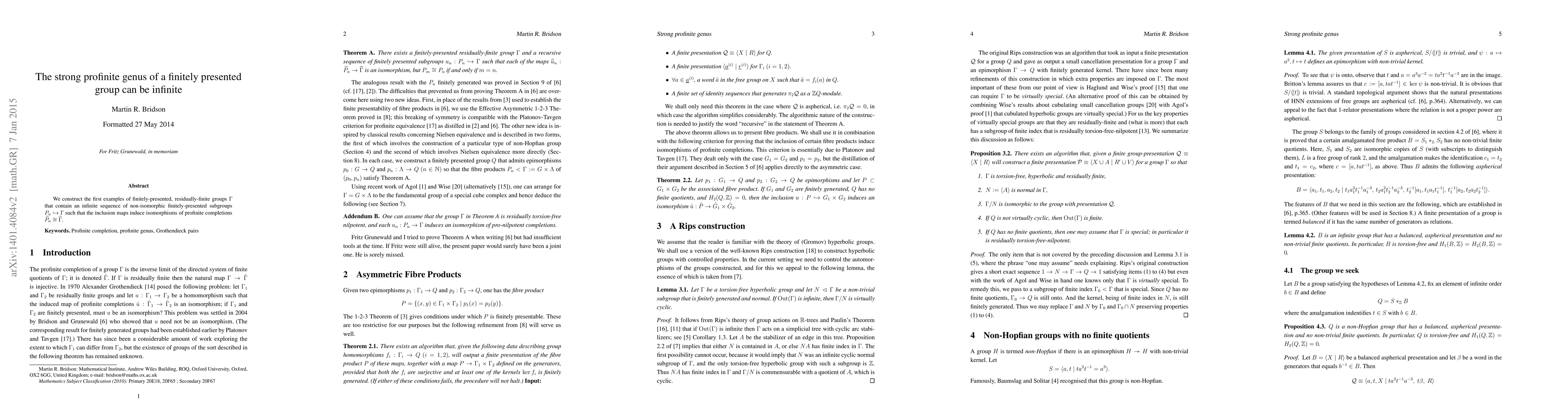 This paper presents a finitely-presented, residually-finite group with an infinite sequence of non-isomorphic finitely-presented subgroups, demonstrating that the strong profinite genus of such groups can be infinite. Each subgroup inclusion induces an isomorphism of profinite completions.