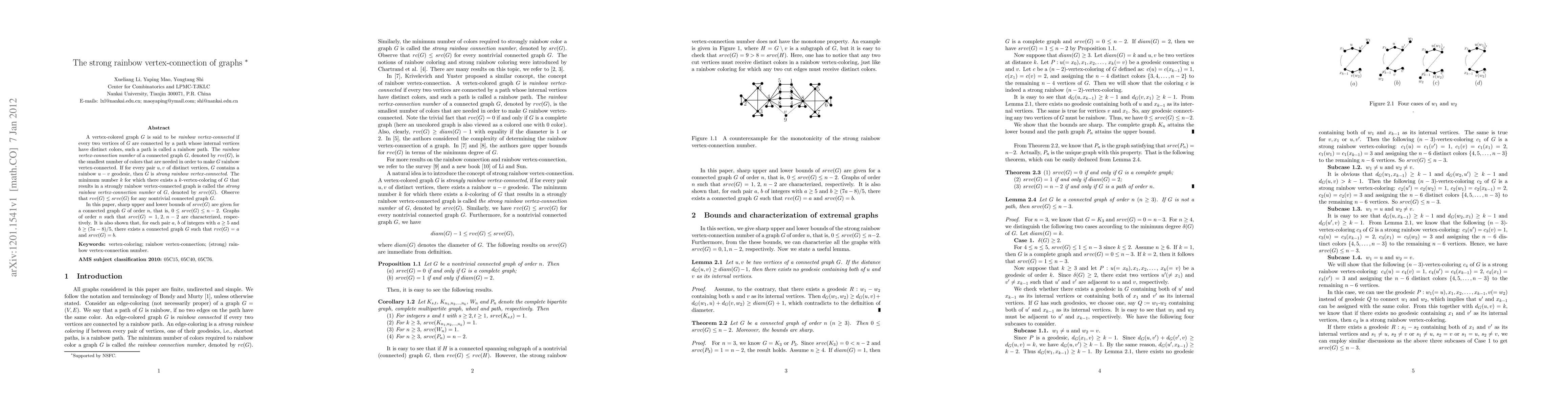 This paper investigates the strong rainbow vertex-connection number ($srvc(G)$) of graphs, which is the minimum number of colors needed to ensure every pair of vertices is connected by a rainbow $u-v$ geodesic. It establishes bounds for $srvc(G)$ and characterizes graphs achieving $srvc(G) = 1, 2, n-2$, and provides constructions for graphs with specific $rvc(G)$ and $srvc(G)$ values.