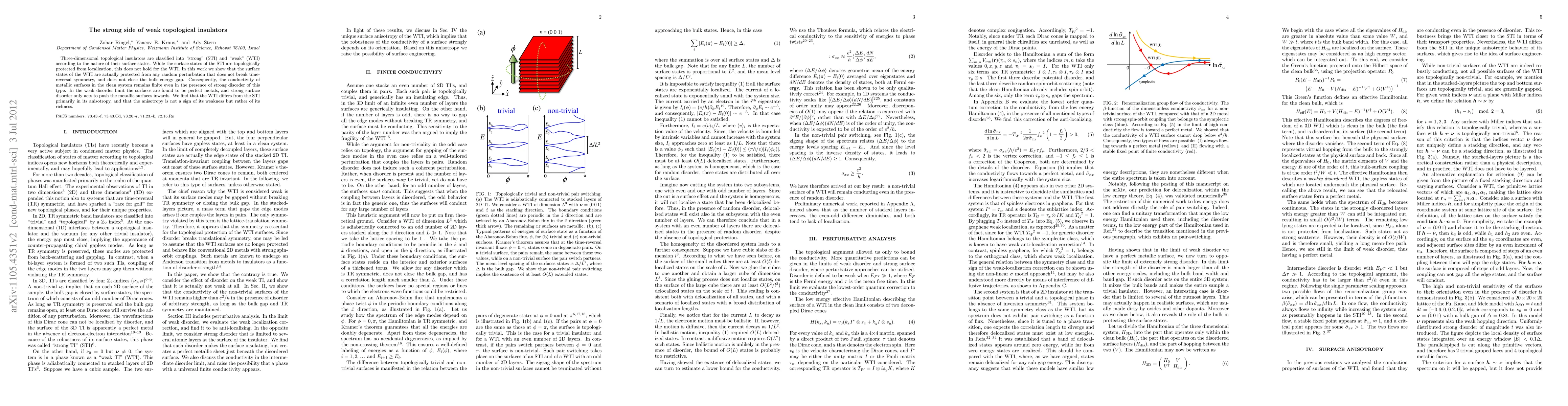 This paper demonstrates that weak topological insulators (WTI) possess surface states that are protected from random perturbations preserving time-reversal symmetry, maintaining finite conductivity even with strong disorder. Unlike strong topological insulators (STI), WTI's anisotropy signifies its unique properties rather than weakness.