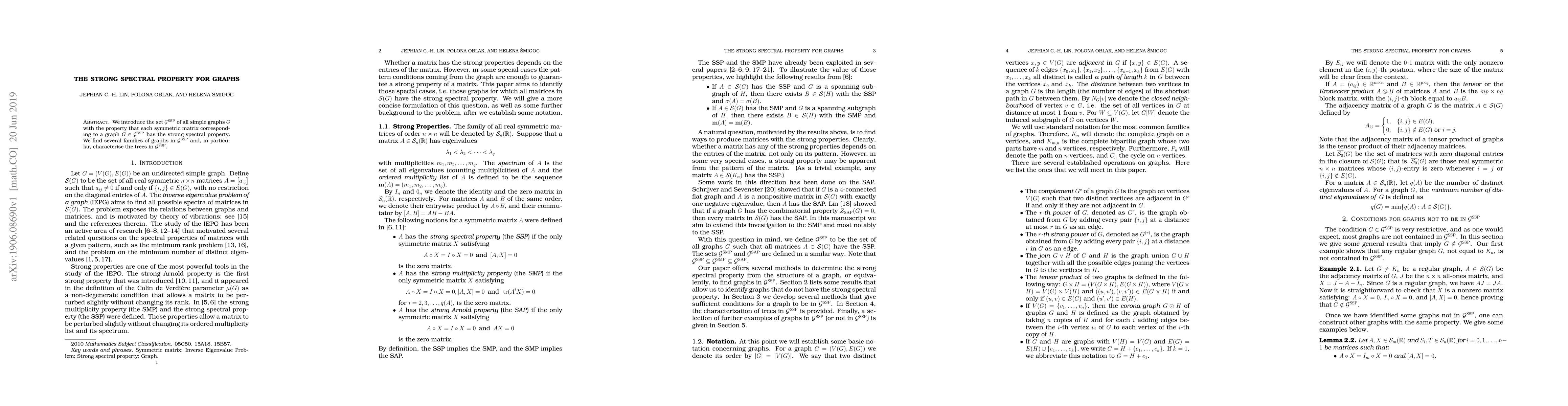 We introduce the set $\mathcal{G}^{\rm SSP}$ of all simple graphs $G$ with the property that each symmetric matrix corresponding to a graph $G \in \mathcal{G}^{\rm SSP}$ has the strong spectral property. We find several families of graphs in $\mathcal{G}^{\rm SSP}$ and, in particular, characterise the trees in $\mathcal{G}^{\rm SSP}$.