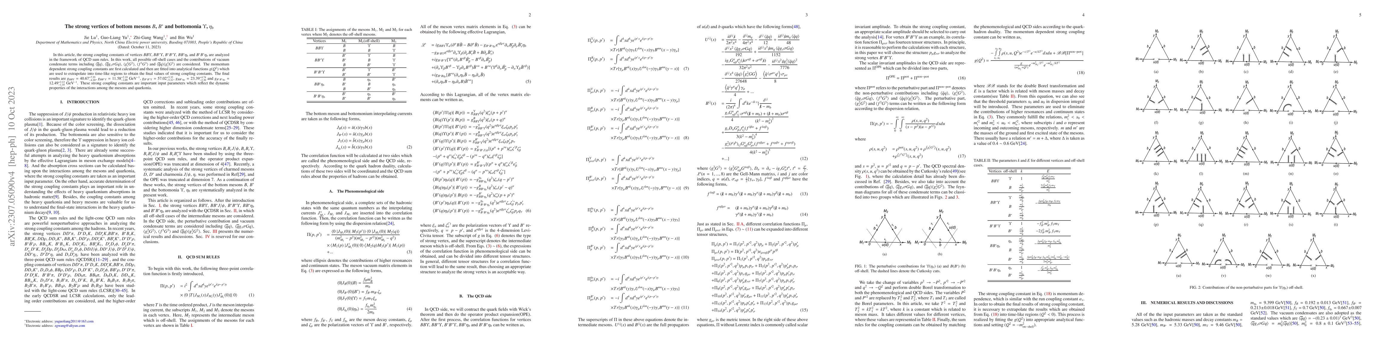 This paper analyzes the strong coupling constants for various vertices involving bottom mesons and quarkonia within QCD sum rules, considering vacuum condensate contributions. The calculated values provide insights into the dynamic interactions among these particles.
