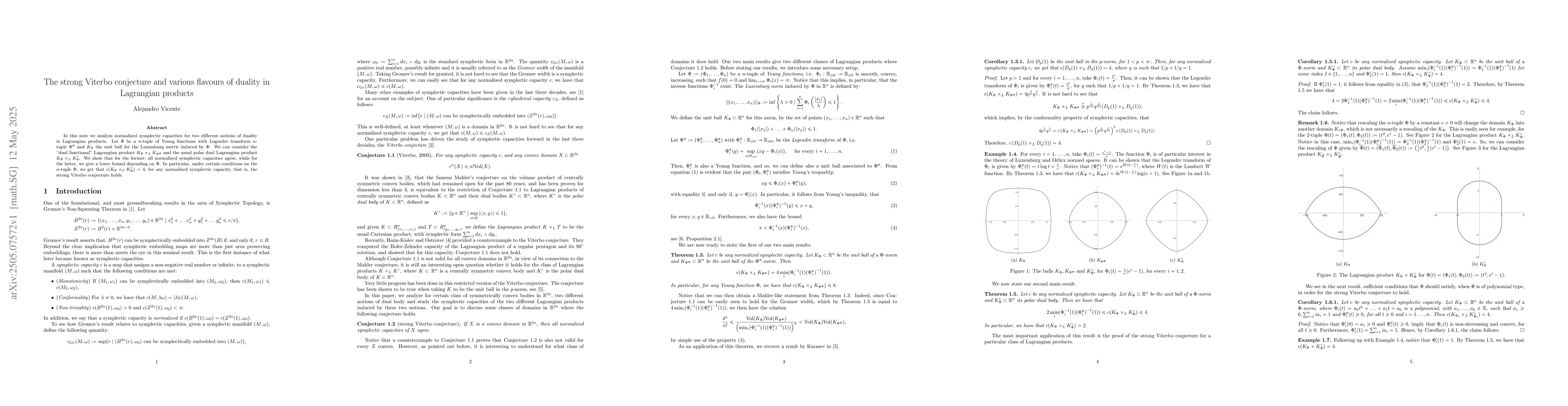 This work combines Young function theory with symplectic capacities and duality in Lagrangian products, providing new insights into the strong Viterbo conjecture.