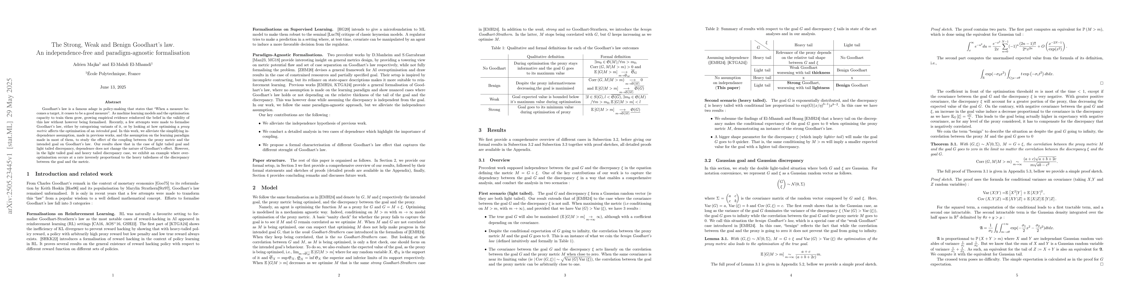 This research paper formalizes Goodhart's law, which suggests that using a measure as a target diminishes its effectiveness. It removes assumptions of independence and learning paradigm, analyzing the impact of coupling between proxy metric and intended goal. The study finds that dependence doesn't alter Goodhart's effect for light-tailed goal and discrepancy, but in light-tailed goal and heavy-tailed discrepancy cases, over-optimization can occur at a rate inversely proportional to the heavy-tailedness of the discrepancy.