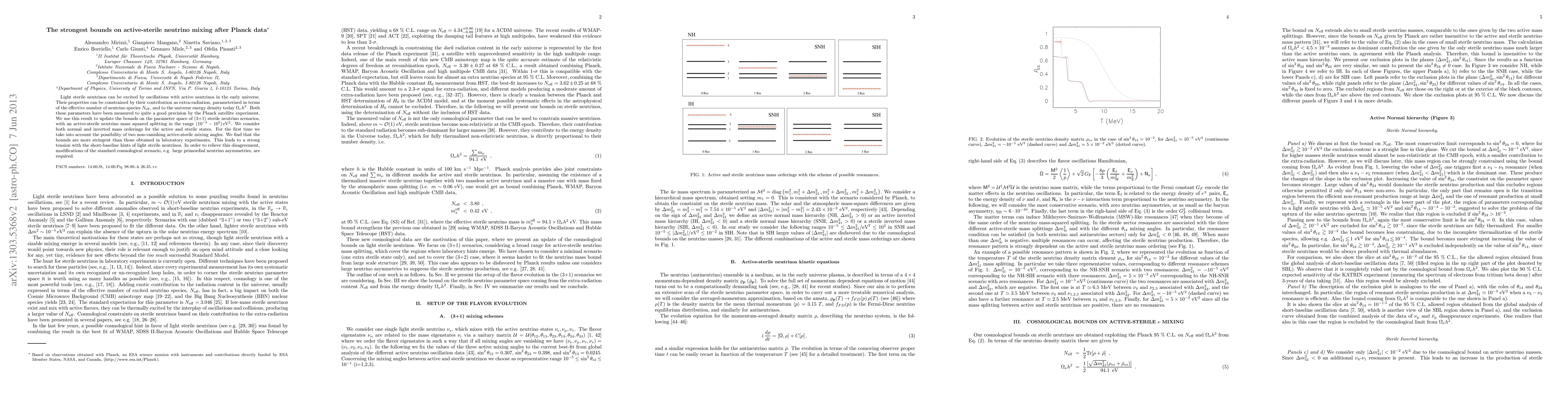 This paper updates the constraints on active-sterile neutrino mixing using Planck satellite data, finding more stringent bounds than laboratory experiments. It suggests a tension with short-baseline sterile neutrino hints, necessitating modifications to the standard cosmological model to resolve the discrepancy.