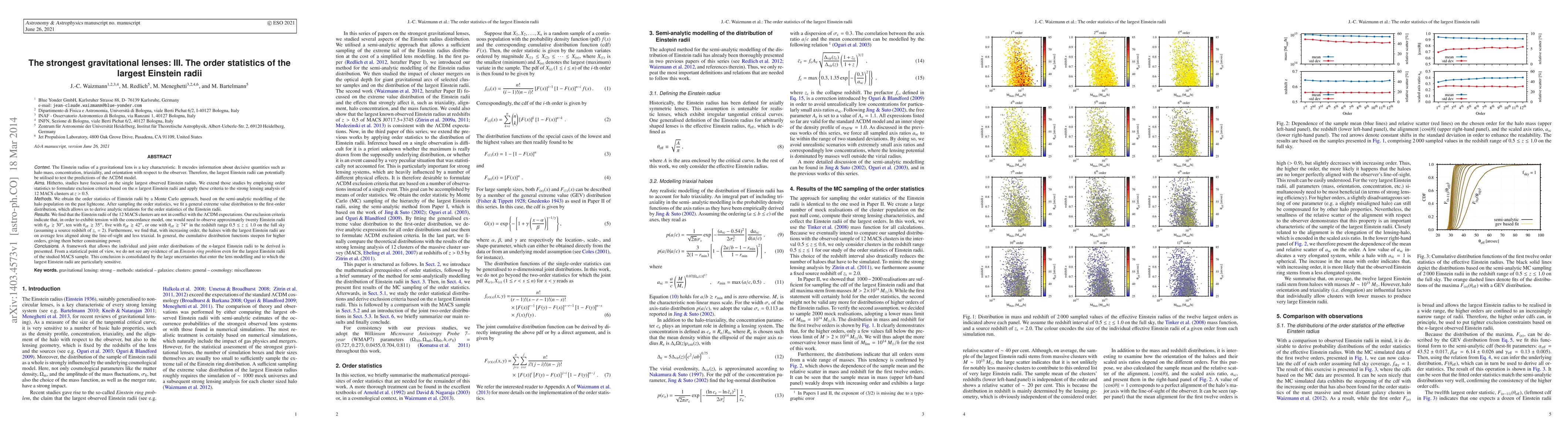 derive analytic relations for the order statistics of the Einstein radii. We