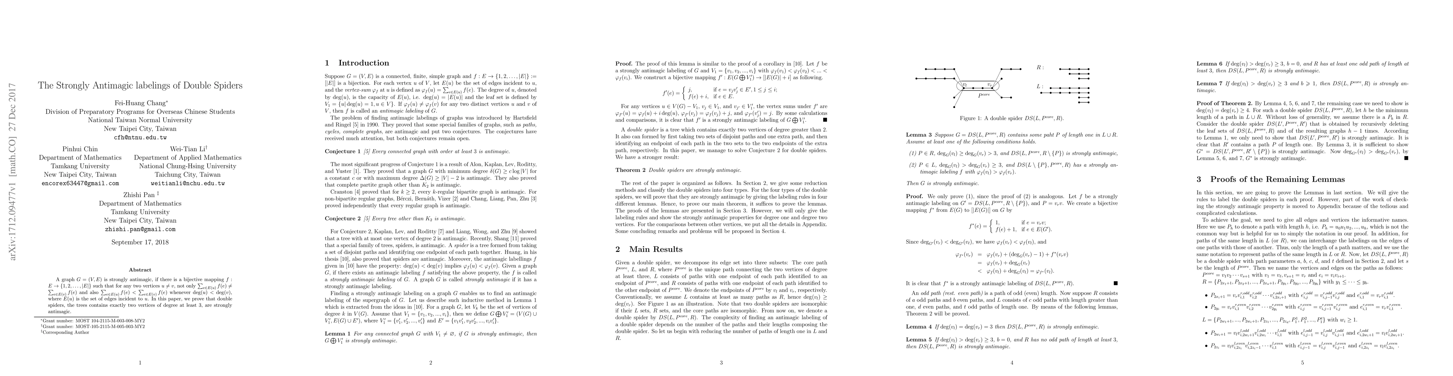 Double spiders, trees with exactly two vertices of degree at least 3, have been proven to be strongly antimagic, meaning their edge labels can satisfy a specific anti-magic property.