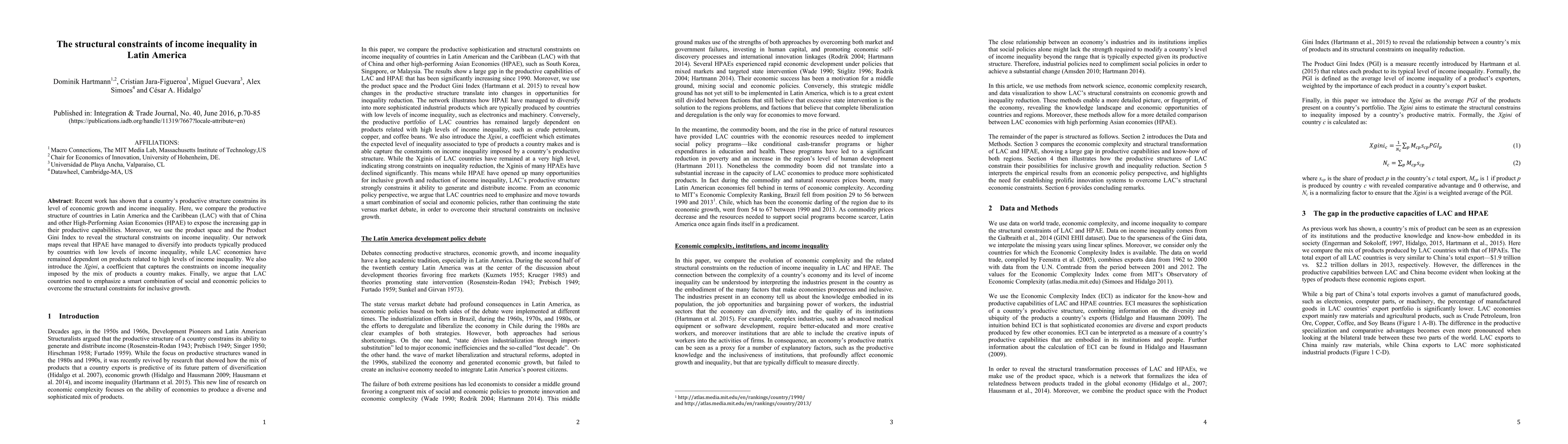 This research compares the productive structures of Latin American and Caribbean (LAC) countries with High-Performing Asian Economies (HPAE), revealing that HPAE diversify into products associated with lower income inequality, while LAC economies remain dependent on products linked to higher inequality. The study introduces the Xgini coefficient to quantify these structural constraints and advocates for a blend of social and economic policies in LAC to promote inclusive growth.