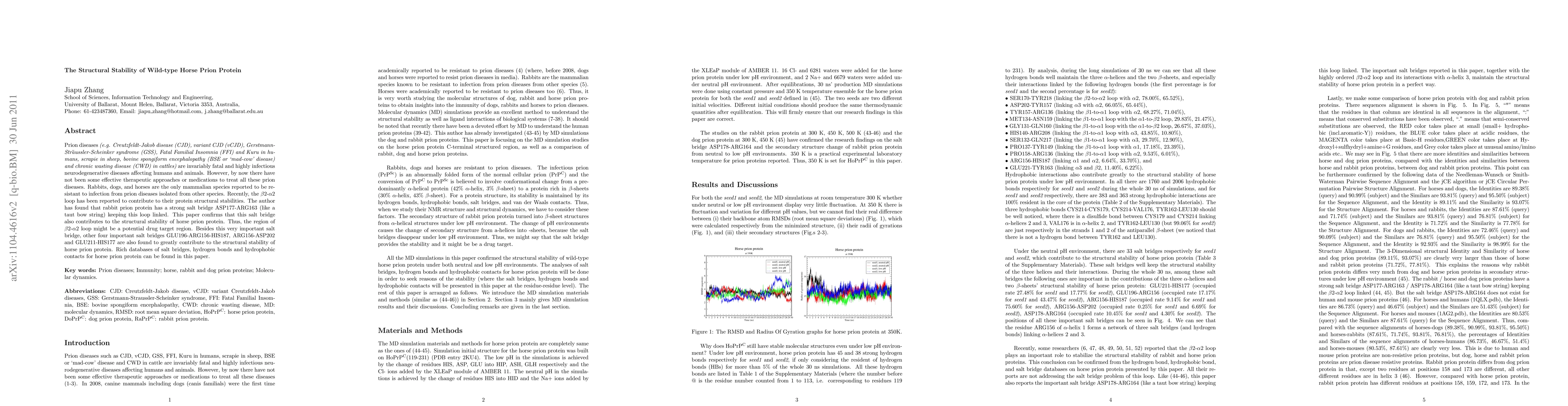 This study investigates the molecular dynamics of horse prion protein and finds that specific salt bridges contribute to its structural stability, potentially making it a target for future drug development.