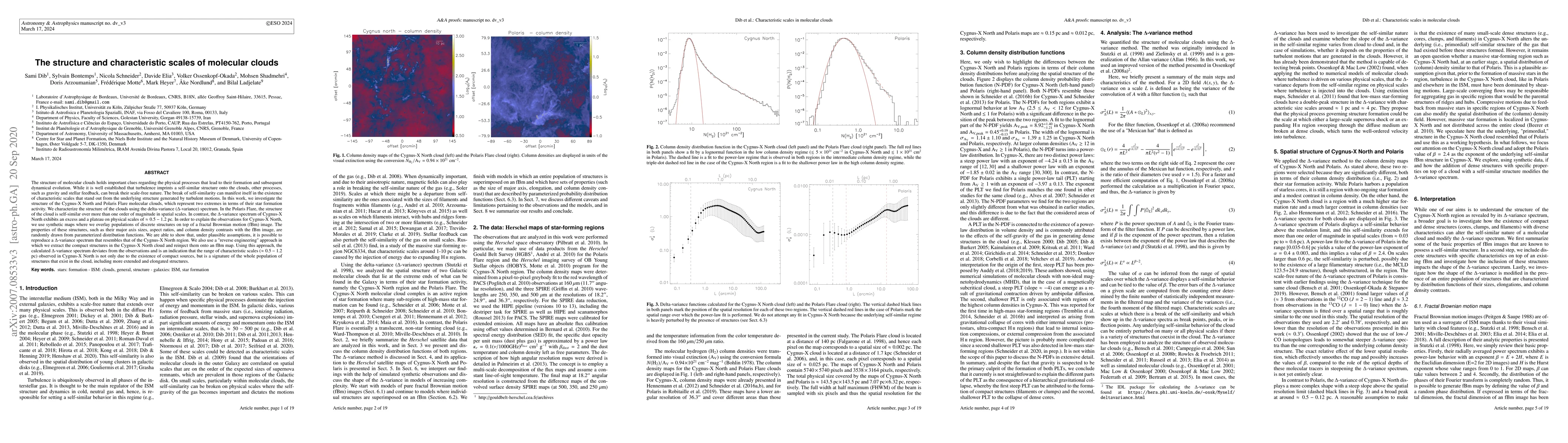 This paper investigates the structure of molecular clouds (MCs) in Cygnus-X North and Polaris, revealing that while Polaris exhibits self-similarity over large scales, Cygnus-X shows characteristic scales due to a combination of turbulent motions and additional compact structures. The study uses $\Delta$-variance spectra and synthetic maps to model the observed structures.