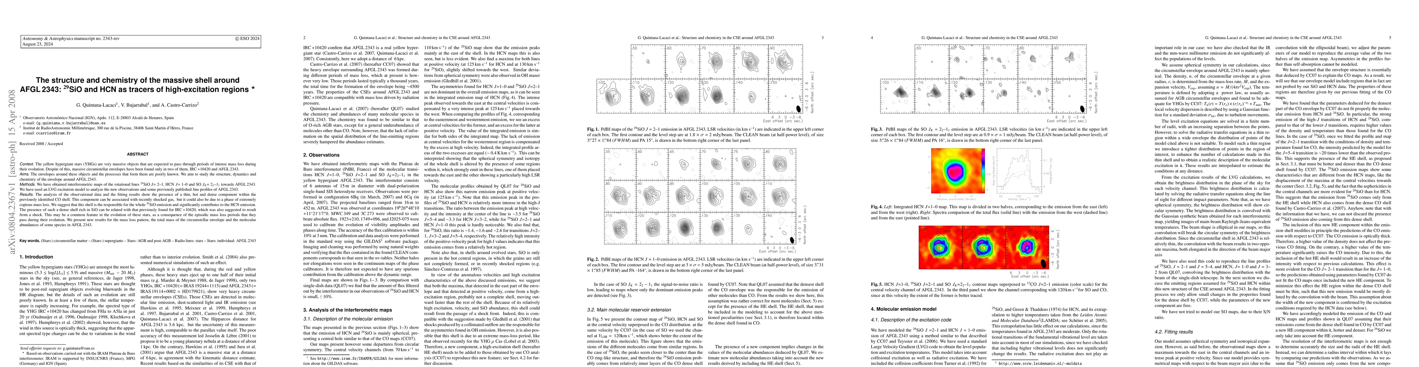 Researchers study the massive shell around AFGL 2343, a yellow hypergiant star, to understand its structure and chemistry. They find a thin, hot, and dense component within the shell that contributes to the emission of certain molecules.