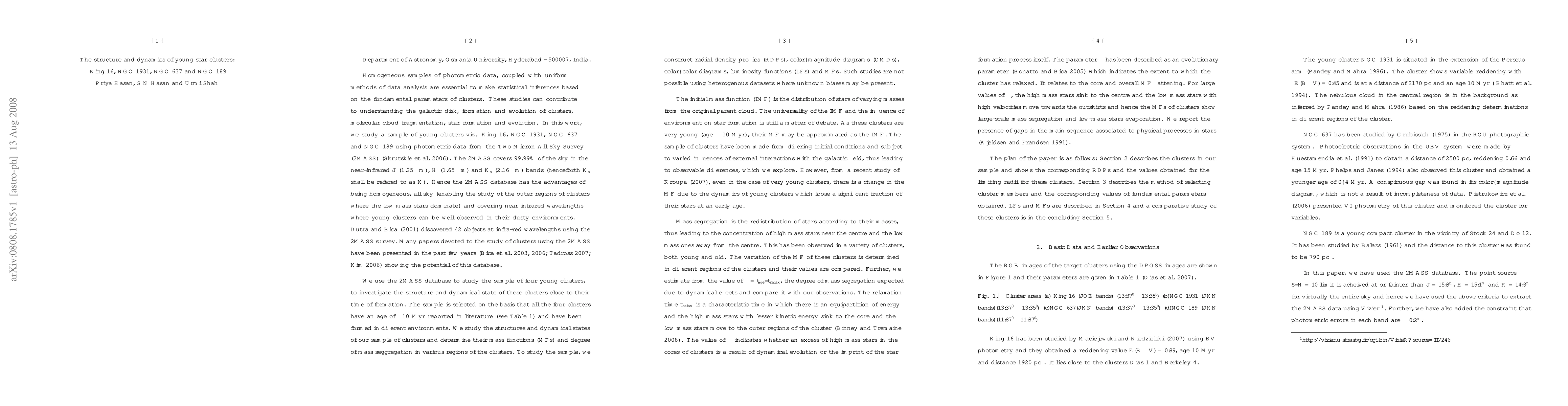 This paper investigates the structural and dynamical properties of young star clusters King 16, NGC 1931, NGC 637, and NGC 189 using 2MASS photometry. The study finds that mass segregation in these clusters occurs when their ages are comparable to their relaxation times, indicating dynamical effects influence the star formation process.
