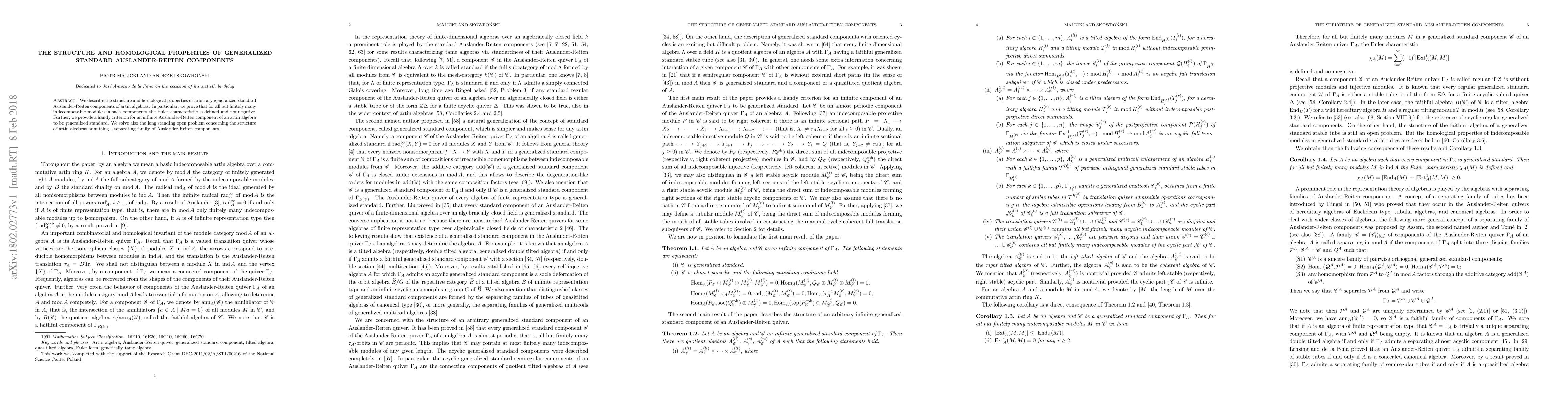 This paper explores the structure and homological properties of generalized standard Auslander-Reiten components in artin algebras, proving that most modules have a nonnegative Euler characteristic. It also offers a criterion for identifying generalized standard components and resolves a longstanding question regarding algebras with separating families of such components.