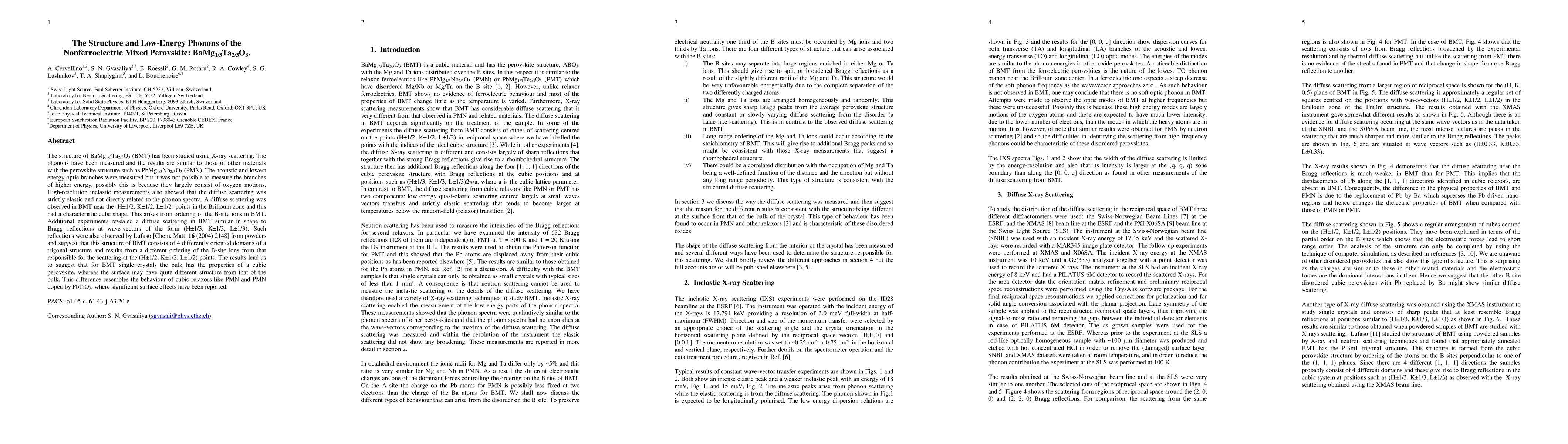 The structure of BaMg1/3Ta2/3O3 (BMT) has been studied using X-ray scattering. The phonons have been measured and the results are similar to those of other materials with the perovskite structure such as PbMg1/3Nb2/3O3 (PMN). The acoustic and lowest energy optic branches were measured but it was not possible to measure the branches of higher energy, possibly this is because they largely consist of oxygen motions. High-resolution inelastic measurements also showed that the diffuse scattering was strictly elastic and not directly related to the phonon spectra. A diffuse scattering was observed in BMT near the (H\pm1/2, K\pm1/2, L\pm1/2) points in the Brillouin zone and this had a characteristic cube shape. This arises from ordering of the B-site ions in BMT. Additional experiments revealed a diffuse scattering in BMT similar in shape to Bragg reflections at wave-vectors of the form (H\pm1/3, K\pm1/3, L\pm1/3). Such reflections were also observed by Lufaso [Chem. Matt. 16 (2004) 2148] from powders and suggest that this structure of BMT consists of 4 differently oriented domains of a trigonal structure and results from a different ordering of the B-site ions from that responsible for the scattering at the (H\pm1/2, K\pm1/2, L\pm1/2) points. The results lead us to suggest that for BMT single crystals the bulk has the properties of a cubic perovskite, whereas the surface may have quite different structure from that of the bulk. This difference resembles the behaviour of cubic relaxors like PMN and PMN doped by PbTiO3, where significant surface effects have been reported.