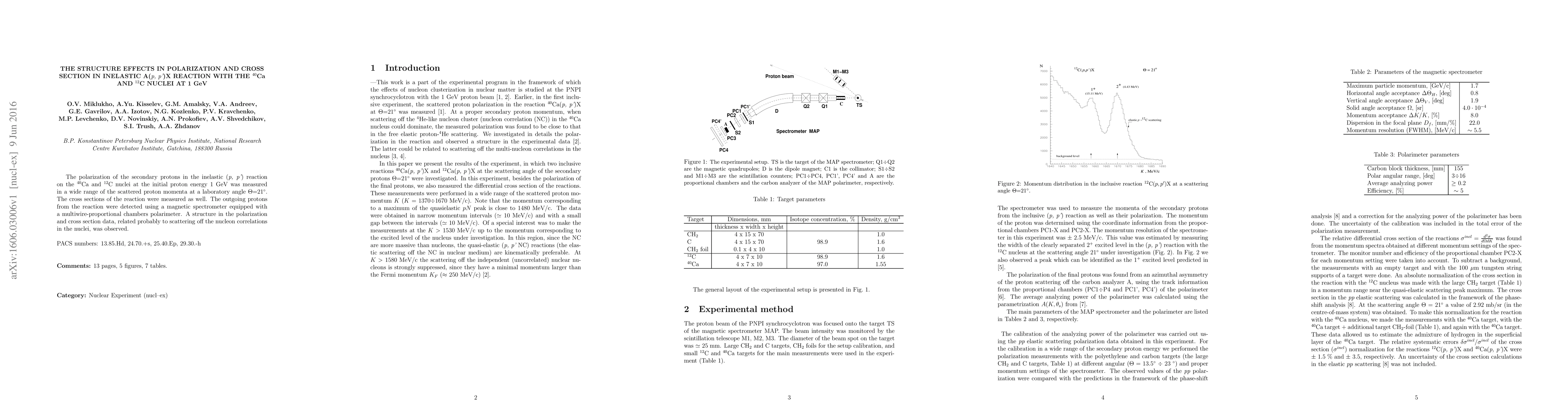 The polarization of the secondary protons in inelastic (p,p') reaction on the 40Ca and 12C nuclei at the initial proton energy 1 GeV was measured in the wide range of the scattered proton momenta at a laboratory angle 21 degree. The cross section of the reactions were measured as well. The outgoing protons from the reaction were detected using a magnetic spectrometer equipped with a multiwire-proportional chambers polarimeter. A structure in the polarization and cross section data, related probably to scattering of the nucleon correlation in the nuclei, was observed.