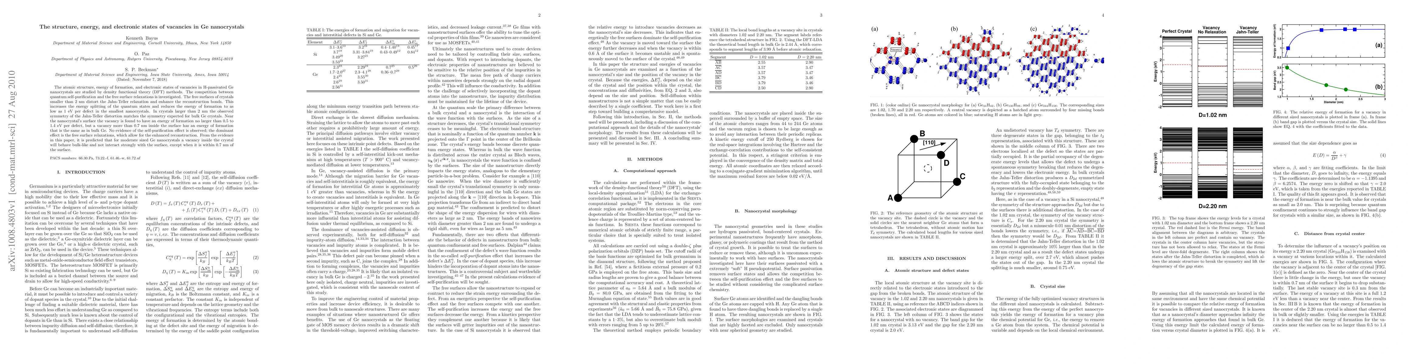 Researchers used density functional theory to study vacancies in Germanium nanocrystals, finding that small crystals exhibit high-energy states due to surface relaxations, while larger crystals behave similarly to bulk Ge.