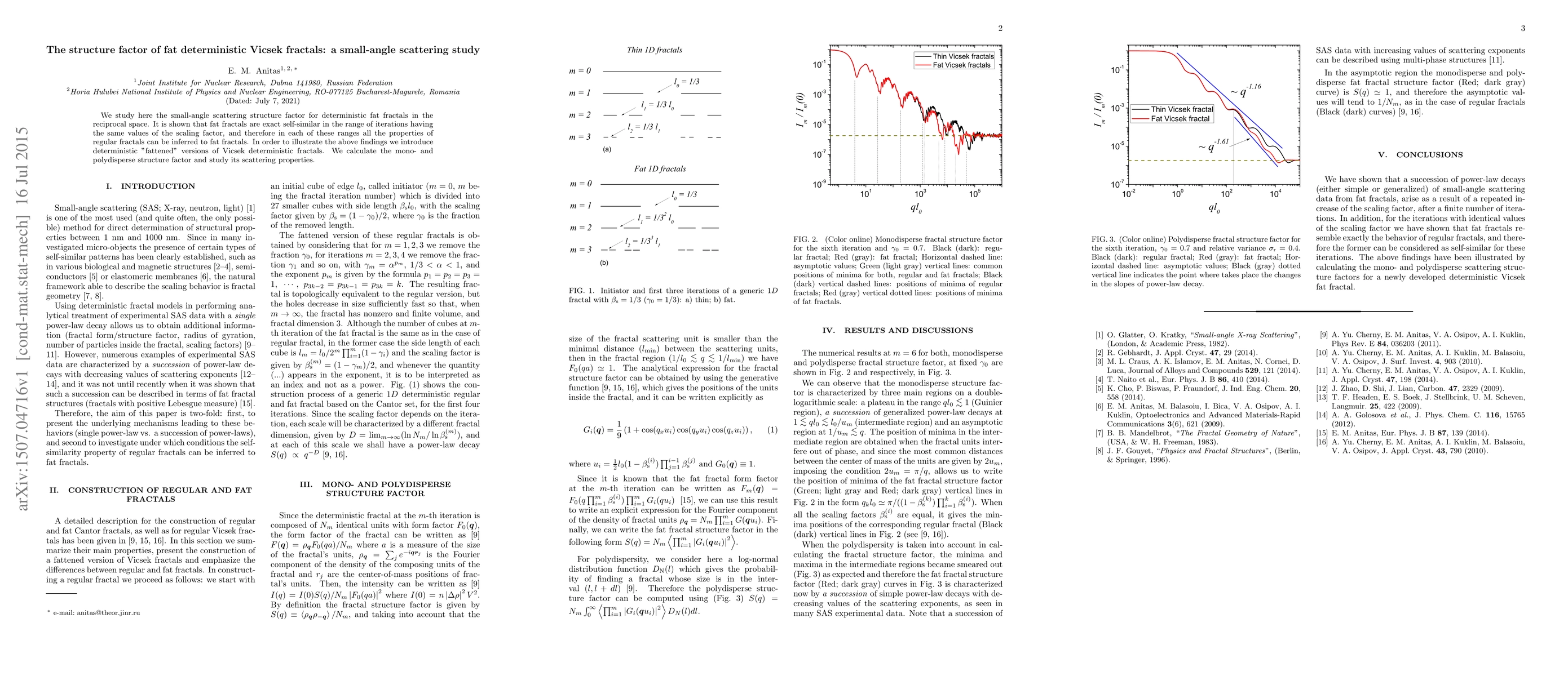 This paper investigates the small-angle scattering structure factor of deterministic fat fractals, specifically fattened versions of Vicsek fractals, demonstrating their exact self-similarity within certain iteration ranges. The study calculates mono- and polydisperse structure factors to analyze their scattering properties.