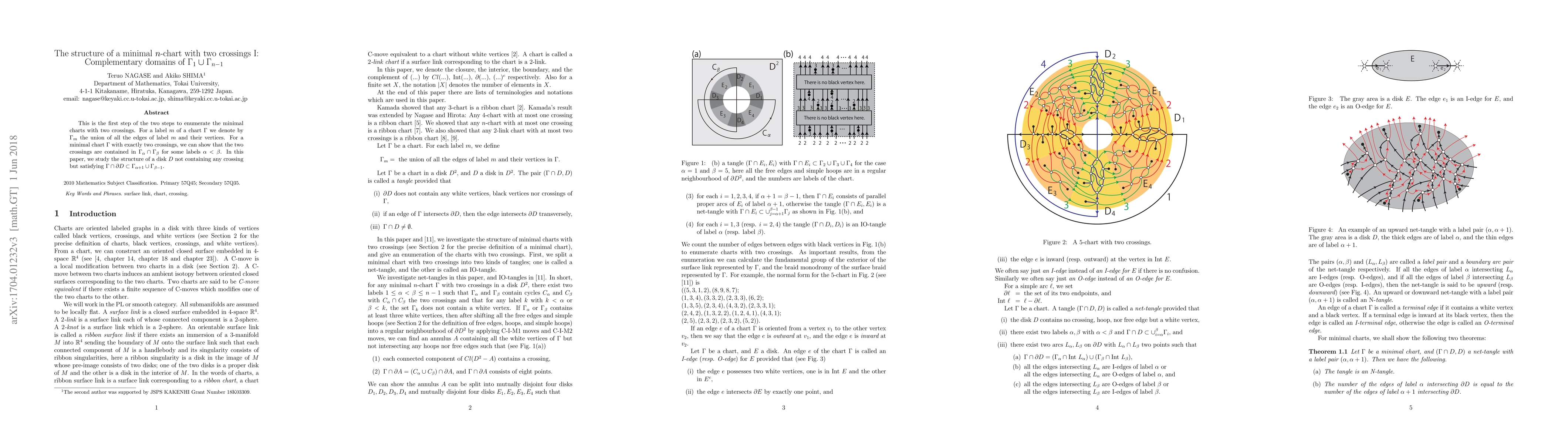 This paper investigates the complementary domains of $\Gamma_1\cup\Gamma_{n-1}$ in minimal $n$-charts with two crossings, demonstrating that the crossings lie within $\Gamma_\alpha\cap\Gamma_\beta$ for some labels $\alpha<\beta$. It also examines disks $D$ that do not contain any crossing but intersect $\Gamma$ in specified labeled regions.