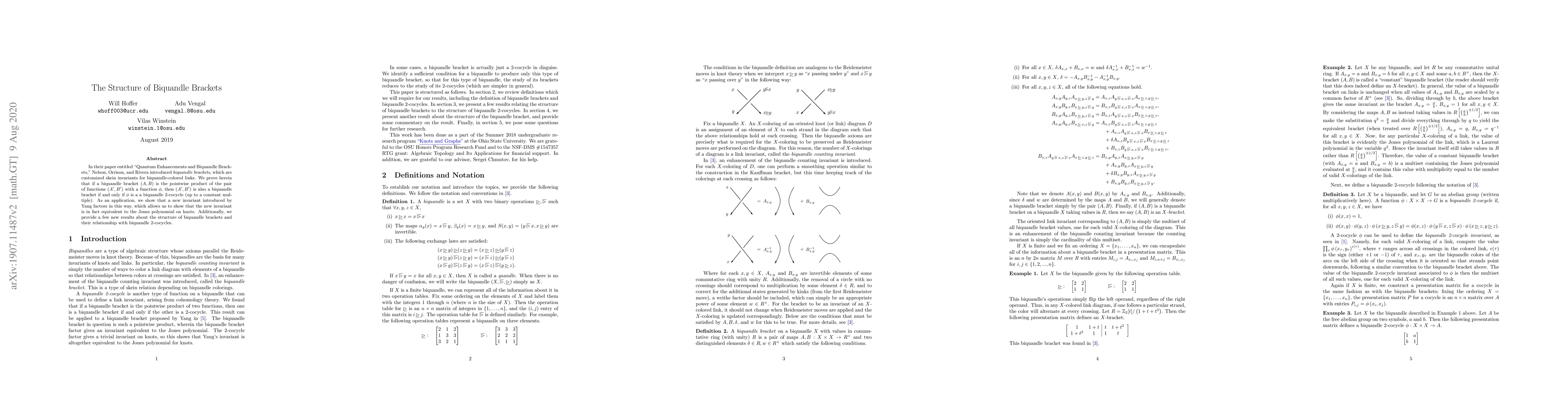 This paper proves that if a biquandle bracket is derived from another through a function, that function is a biquandle 2-cocycle. It demonstrates the equivalence of a new biquandle-derived invariant with the Jones polynomial on knots and provides additional insights into the structure of biquandle brackets and their cocycles.