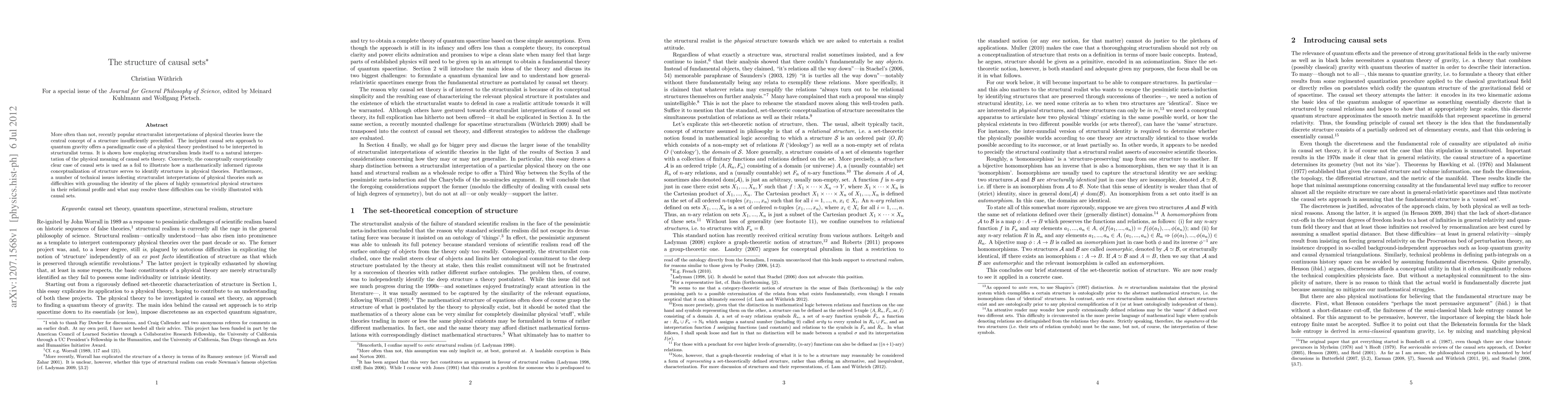 More often than not, recently popular structuralist interpretations of physical theories leave the central concept of a structure insufficiently precisified. The incipient causal sets approach to quantum gravity offers a paradigmatic case of a physical theory predestined to be interpreted in structuralist terms. It is shown how employing structuralism lends itself to a natural interpretation of the physical meaning of causal sets theory. Conversely, the conceptually exceptionally clear case of causal sets is used as a foil to illustrate how a mathematically informed rigorous conceptualization of structure serves to identify structures in physical theories. Furthermore, a number of technical issues infesting structuralist interpretations of physical theories such as difficulties with grounding the identity of the places of highly symmetrical physical structures in their relational profile and what may resolve these difficulties can be vividly illustrated with causal sets.