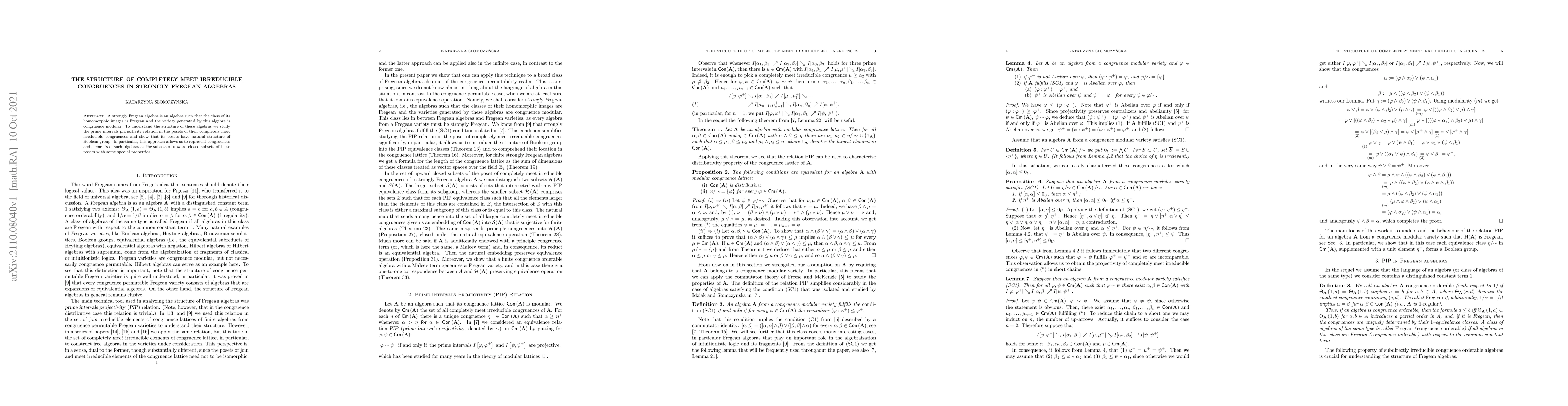 The paper studies the structure of completely meet irreducible congruences in strongly Fregean algebras, showing that their cosets have a natural Boolean group structure.