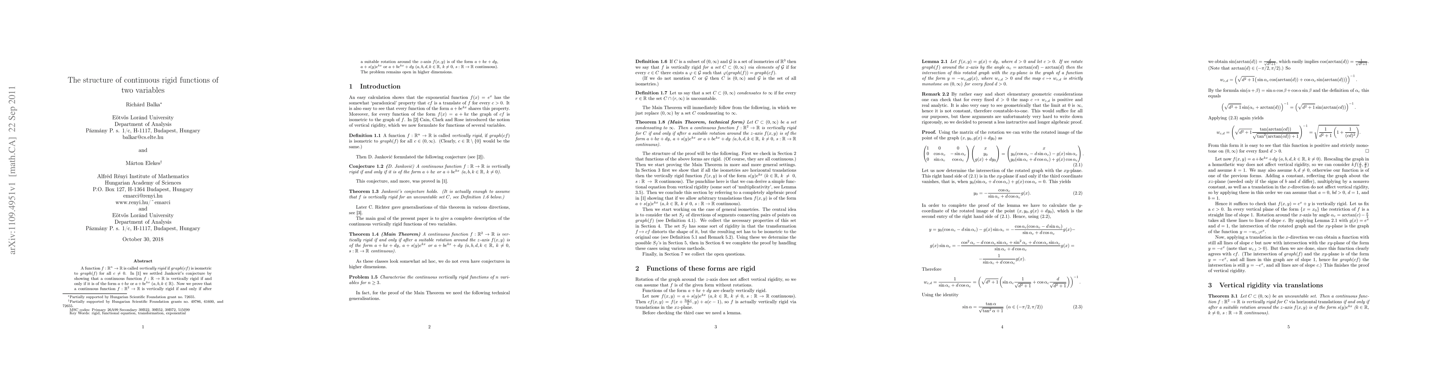 A continuous function from two-dimensional space to one dimension is vertically rigid if it can be mapped onto itself through a non-zero scaling factor; the research settles this condition for functions of the form $a + bx + dy$ or $a + s(y)e^{kx}$.