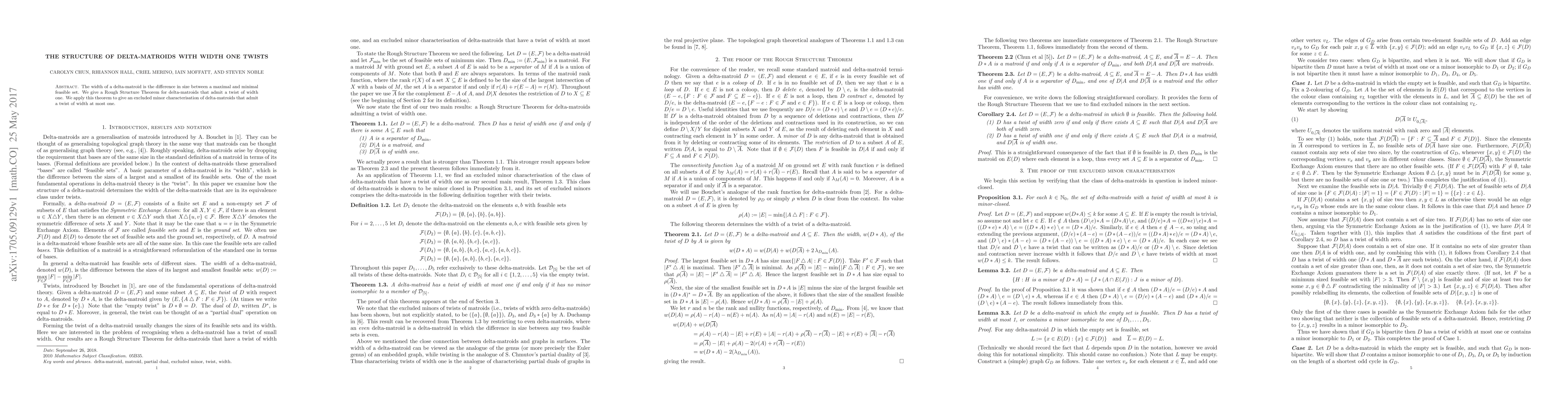 The width of a delta-matroid is the difference in size between a maximal and minimal feasible set. We give a Rough Structure Theorem for delta-matroids that admit a twist of width one. We apply this theorem to give an excluded minor characterisation of delta-matroids that admit a twist of width at most one.