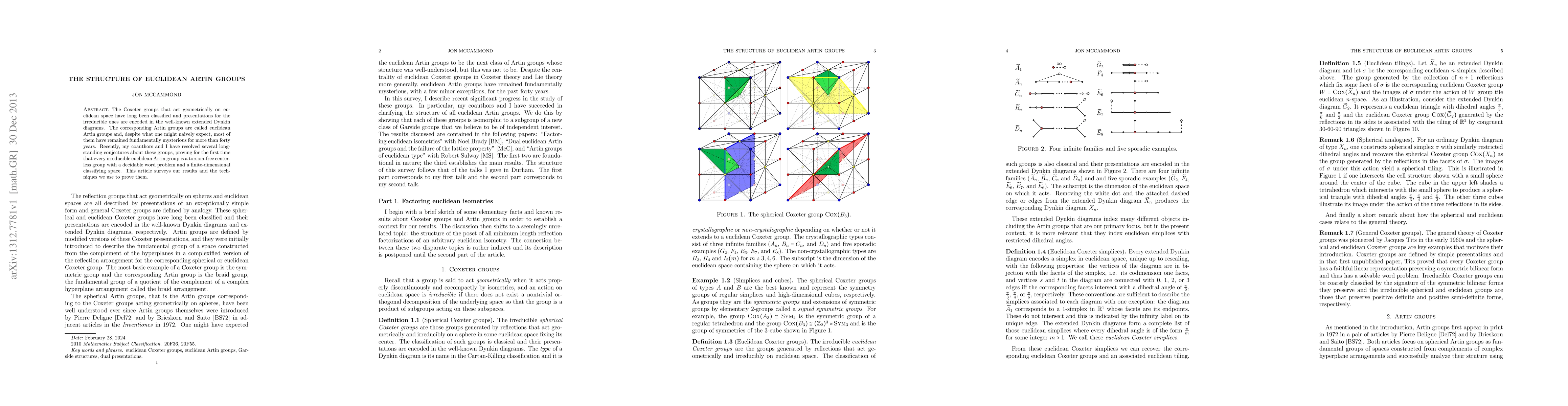 This paper resolves longstanding conjectures about Euclidean Artin groups, proving they are torsion-free, centerless, and have a decidable word problem and finite-dimensional classifying space. The authors survey their findings and the techniques employed in the proofs.