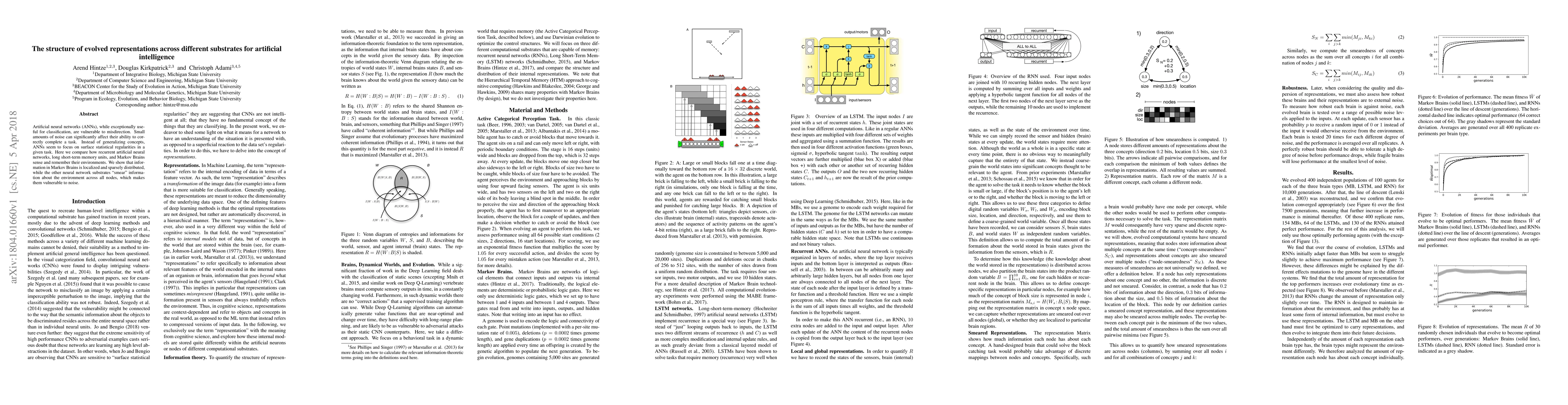 Artificial neural networks (ANNs), while exceptionally useful for classification, are vulnerable to misdirection. Small amounts of noise can significantly affect their ability to correctly complete a task. Instead of generalizing concepts, ANNs seem to focus on surface statistical regularities in a given task. Here we compare how recurrent artificial neural networks, long short-term memory units, and Markov Brains sense and remember their environments. We show that information in Markov Brains is localized and sparsely distributed, while the other neural network substrates "smear" information about the environment across all nodes, which makes them vulnerable to noise.