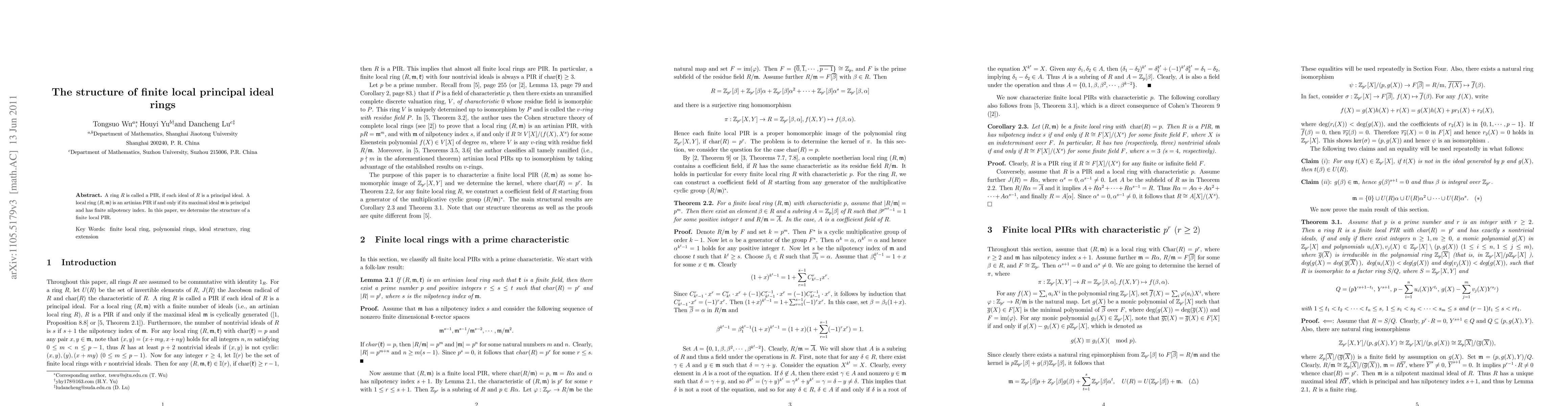 The paper provides new insights into the properties of finite local principal ideal rings, shedding light on their unique characteristics and implications for ring theory.
