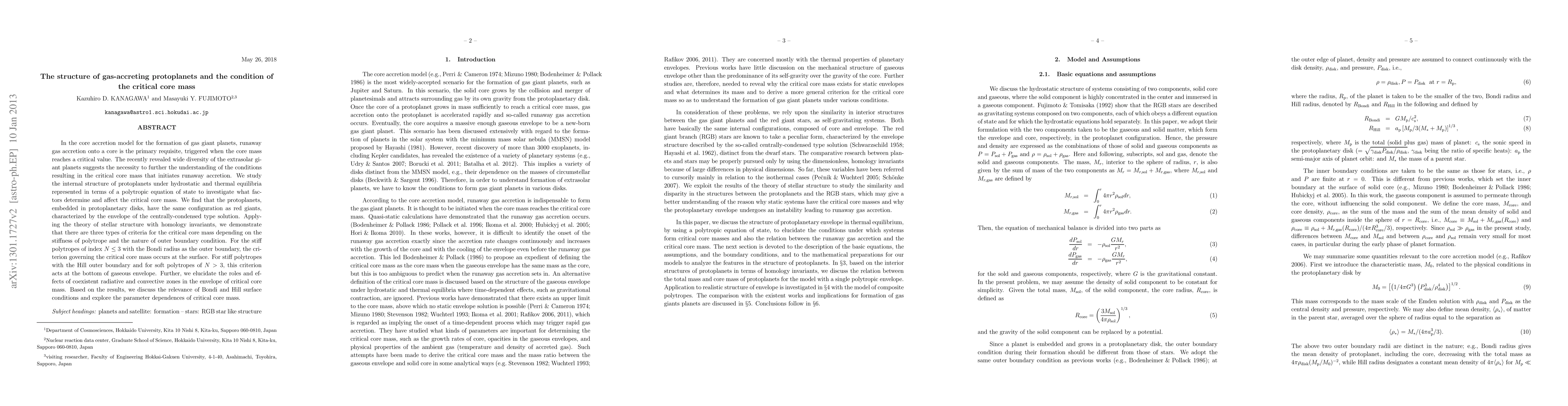 This paper explores the internal structure of gas-accreting protoplanets and identifies the conditions for the critical core mass that initiates runaway gas accretion. It finds that protoplanets resemble red giants and uses stellar structure theory to determine three criteria for the critical core mass based on polytrope stiffness and boundary conditions.