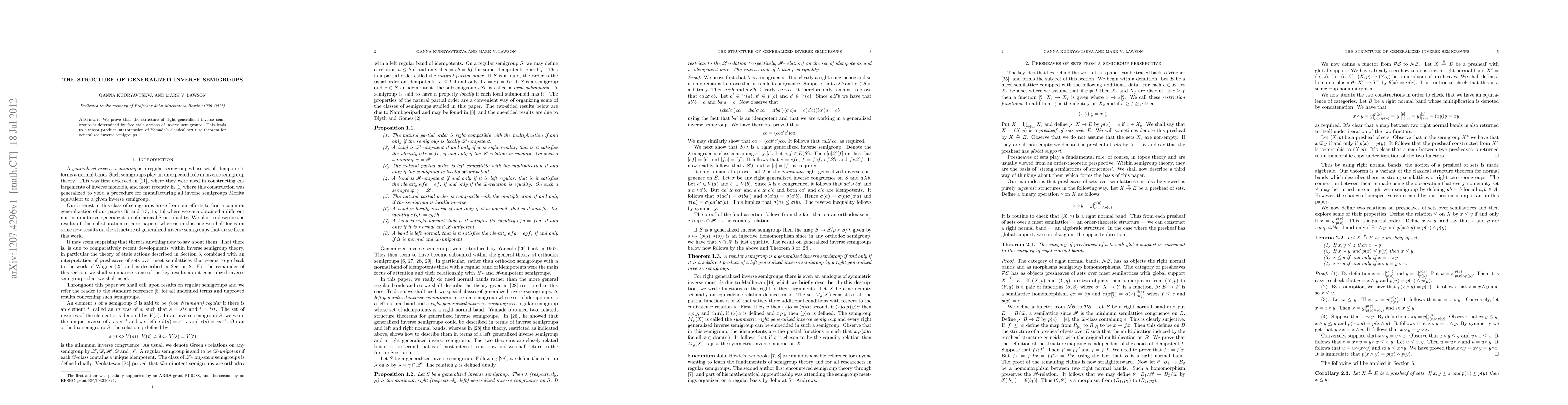 Summary: The paper establishes that the structure of right generalized inverse semigroups is defined by free \'etale actions of inverse semigroups, providing a tensor product interpretation of Yamada's foundational structure theorem.