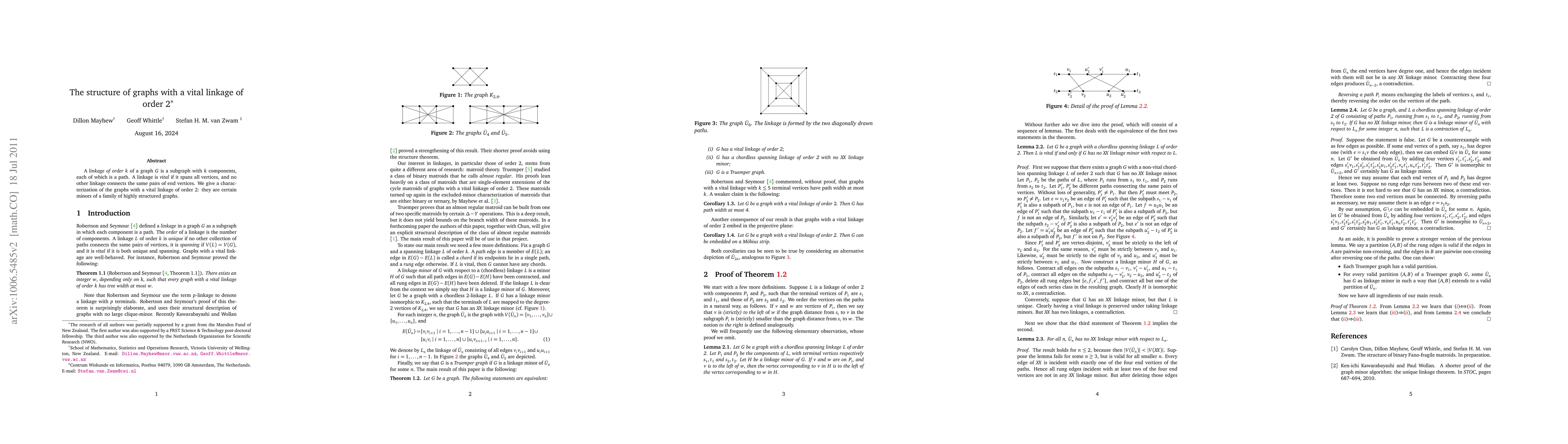 A linkage of order k of a graph G is a subgraph with k components, each of which is a path. A linkage is vital if it spans all vertices, and no other linkage connects the same pairs of end vertices. We give a characterization of the graphs with a vital linkage of order 2: they are certain minors of a family of highly structured graphs.