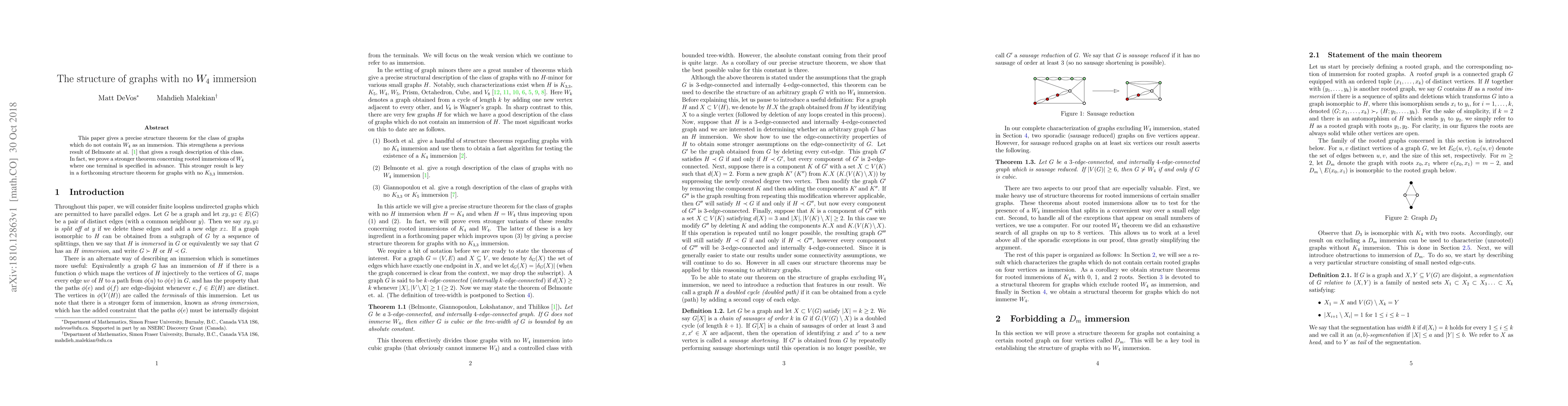 The paper introduces a stronger theorem on rooted immersions of $W_4$, which extends previous work on graphs without $W_4$ immersion.