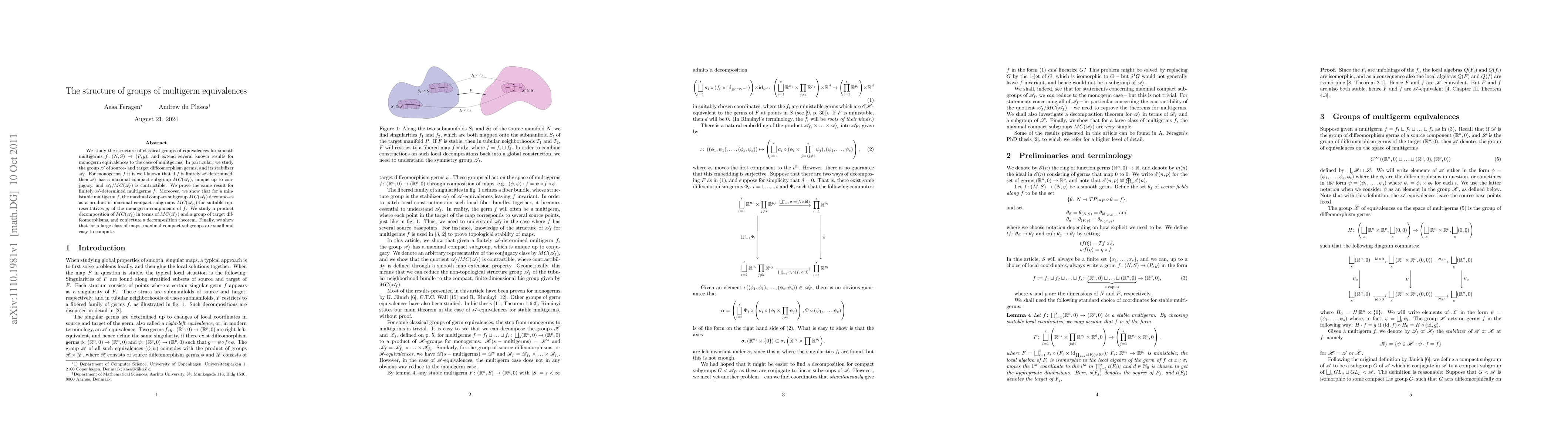 The paper studies the structure of groups of equivalences for smooth multigerms, extending known results to multigerms and showing that certain subgroups have maximal compact subgroups that can be decomposed in specific ways.