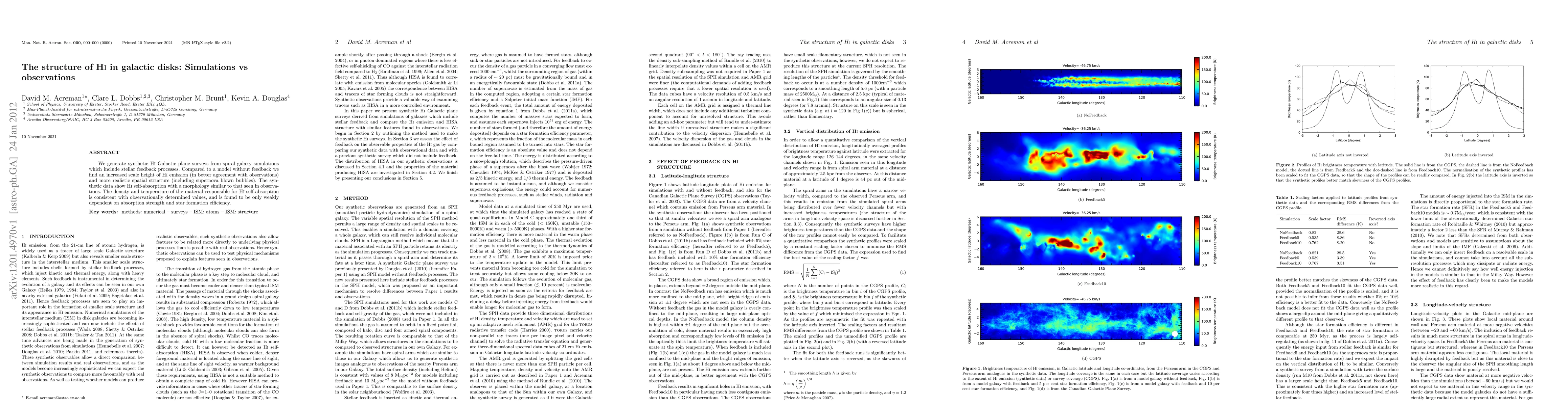 This paper compares synthetic HI surveys from galaxy simulations including stellar feedback to observational data, finding that feedback improves agreement with observations by increasing HI scale height and creating more realistic structures like supernova bubbles. The simulated HI self-absorption matches observed morphology and density/temperature profiles.