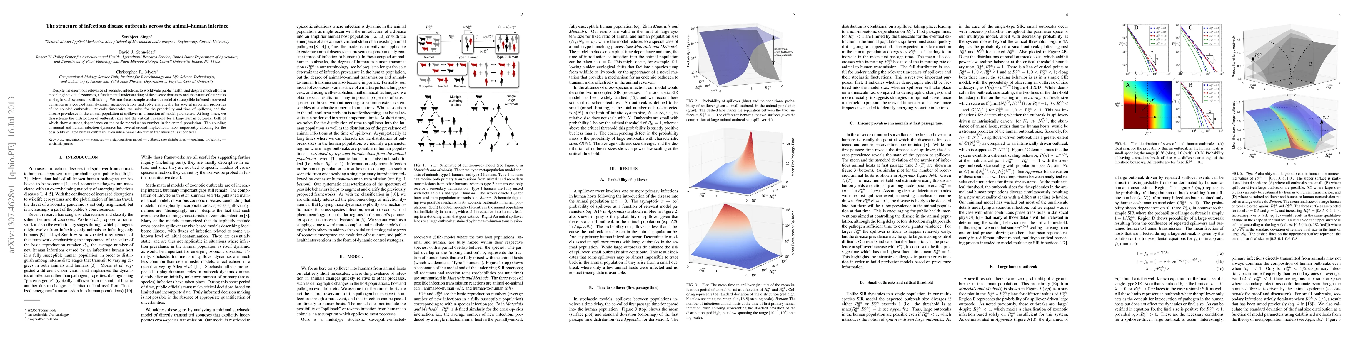 The study solves for key outbreak properties, including spillover probability, disease prevalence in animal populations, and a critical threshold for large human outbreaks, all strongly dependent on basic reproduction numbers.