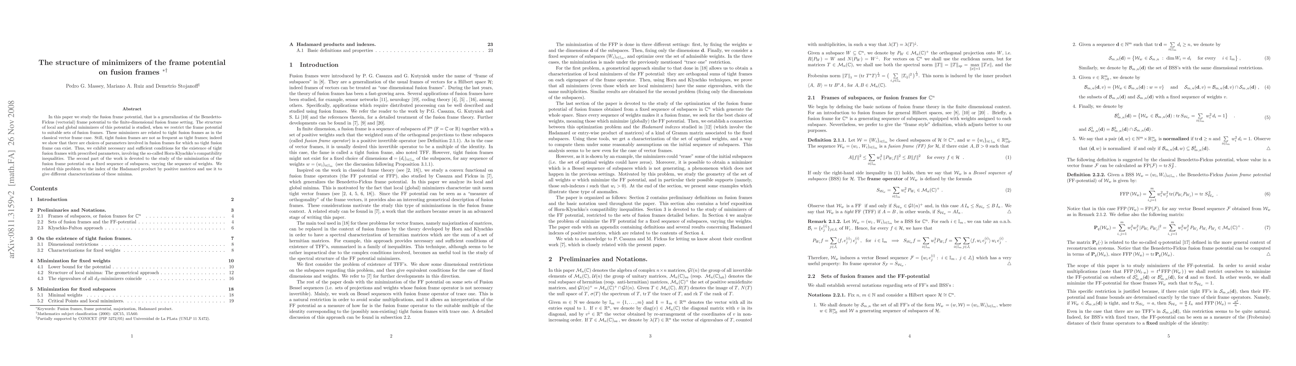 This paper explores the structure of minimizers for the fusion frame potential, a generalization of the Benedetto-Fickus frame potential to fusion frames. It establishes necessary and sufficient conditions for the existence of tight fusion frames, involving the Horn-Klyachko compatibility inequalities, and studies the minimization of the fusion frame potential on a sequence of subspaces, relating it to the index of the Hadamard product by positive matrices.