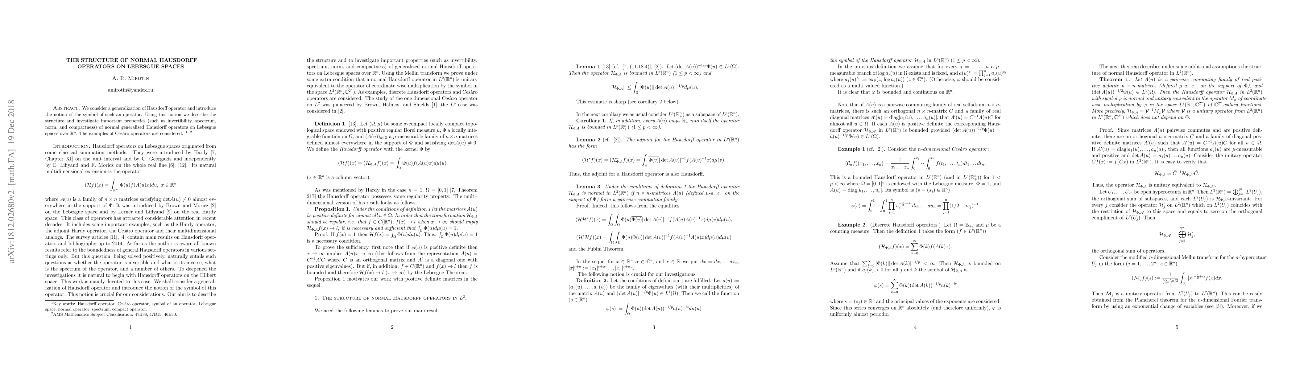 The paper presents a detailed analysis of normal Hausdorff operators, introducing the concept of their symbols and describing their structure on Lebesgue spaces, along with proving important properties and providing examples.
