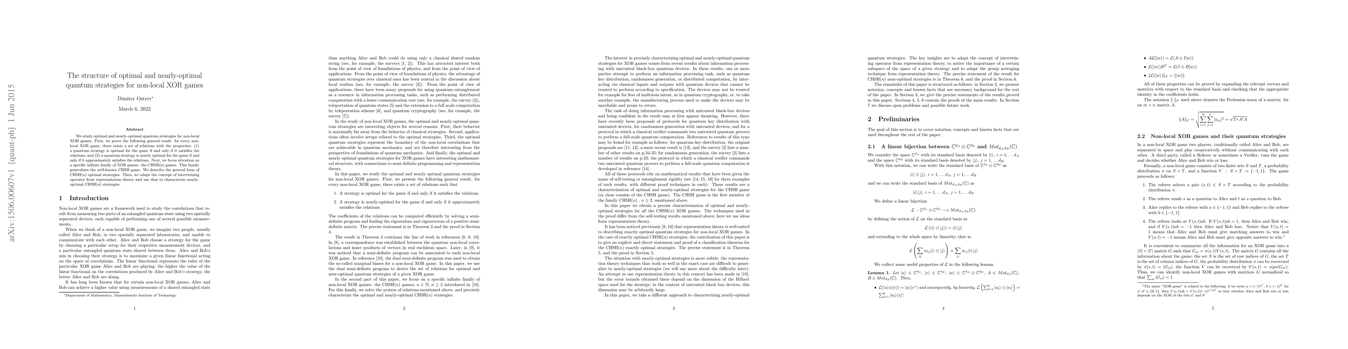 This paper investigates optimal and nearly-optimal quantum strategies for non-local XOR games, proving that quantum strategies are optimal or nearly optimal if they satisfy or approximately satisfy certain relations. It specifically analyzes the CHSH(n) family of games, describing the structure of optimal strategies and characterizing nearly-optimal strategies using intertwining operators.