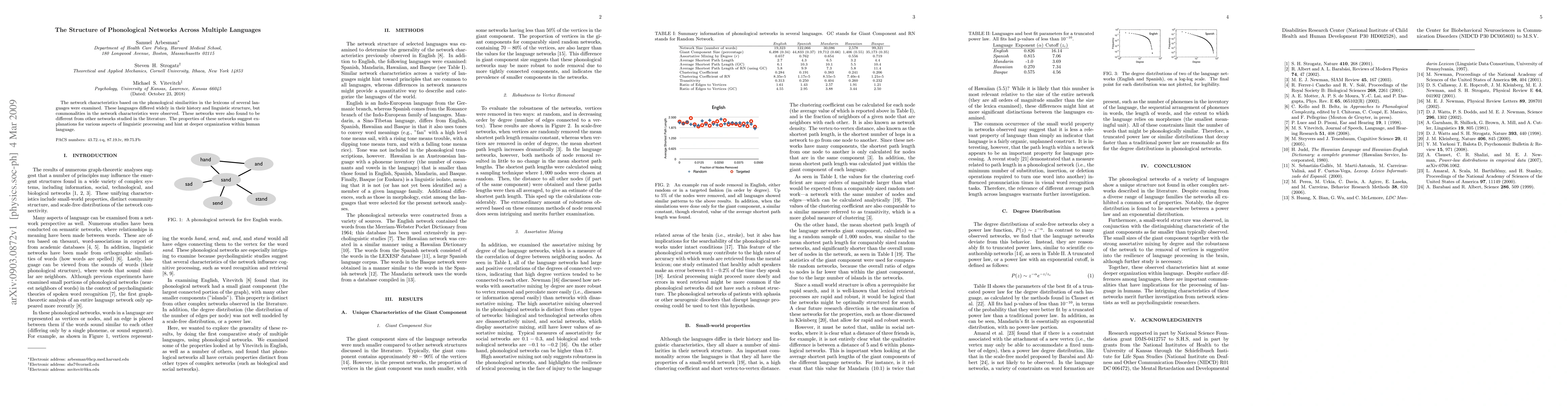 This paper investigates phonological networks across diverse languages, revealing common structural characteristics despite varied linguistic histories. These unique networks provide insights into linguistic processing and suggest a deeper organizational principle in human language.
