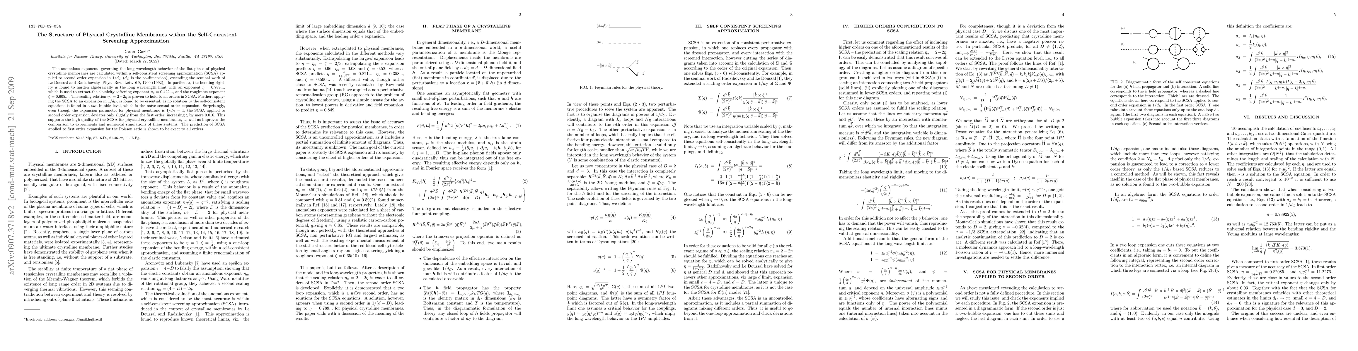 The anomalous exponents governing the long wavelength behavior of the flat phase of physical crystalline membranes are calculated within a self-consistent screening approximation (SCSA) applied to second order expansion in 1/d_C (d_C is the co-dimension), extending the seminal work of Le Doussal and Radzihovsky [Phys. Rev. Lett. 69, 1209 (1992)]. In particular, the bending rigidity is found to harden algebraically in the long wavelength limit with an exponent eta=0.789..., which is used to extract the elasticity softening exponent eta_u=0.422..., and the roughness exponent zeta=0.605.... The scaling relation eta_u=2-2eta is proven to hold to all orders in SCSA. Further, applying the SCSA to an expansion in 1/d_C, is found to be essential, as no solution to the self-consistent equations is found in a two bubble level, which is the naive second order expansion. Surprisingly, even though the expansion parameter for physical membrane is 1/d_C=1, the SCSA applied to second order expansion deviates only slightly from the first order, increasing zeta by mere 0.016. This supports the high quality of the SCSA for physical crystalline membranes, as well as improves the comparison to experiments and numerical simulations of these systems. The prediction of SCSA applied to first order expansion for the Poisson ratio is shown to be exact to all orders.