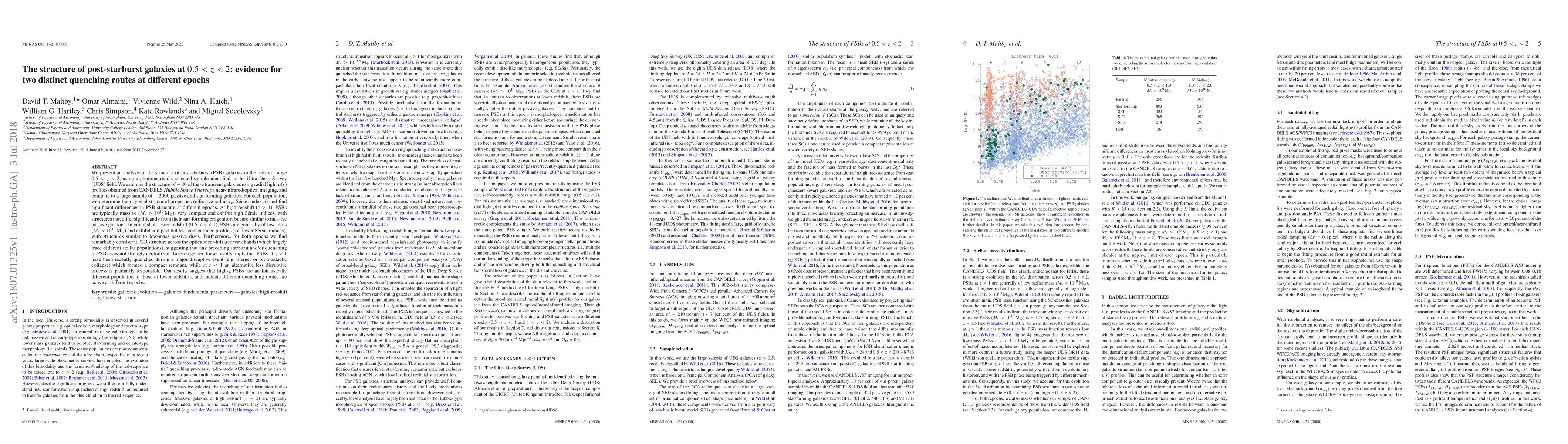 This paper analyzes the structure of post-starburst galaxies at $0.5 < z < 2$, revealing two distinct quenching routes: major disruptive events at high redshift ($z > 1$) and less disruptive processes at lower redshift ($0.5 < z < 1$). The study finds significant structural differences between PSBs at different epochs.