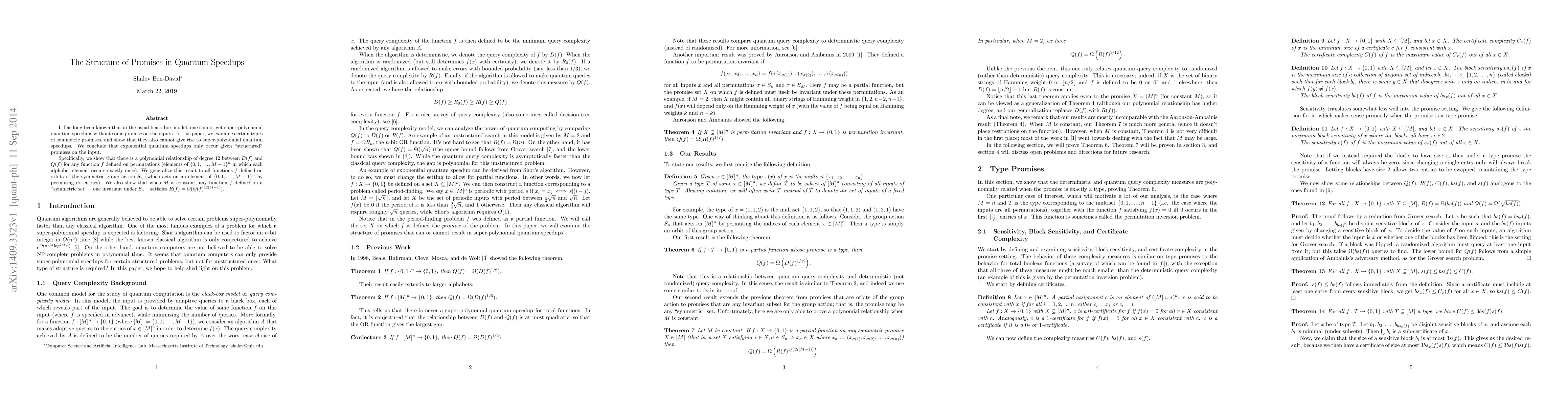 This paper investigates quantum speedups under symmetric input promises, demonstrating that no super-polynomial quantum speedups can be achieved without structured input. It establishes a polynomial relationship between quantum and classical query complexities for functions on permutations and generalizes this to functions on symmetric sets.