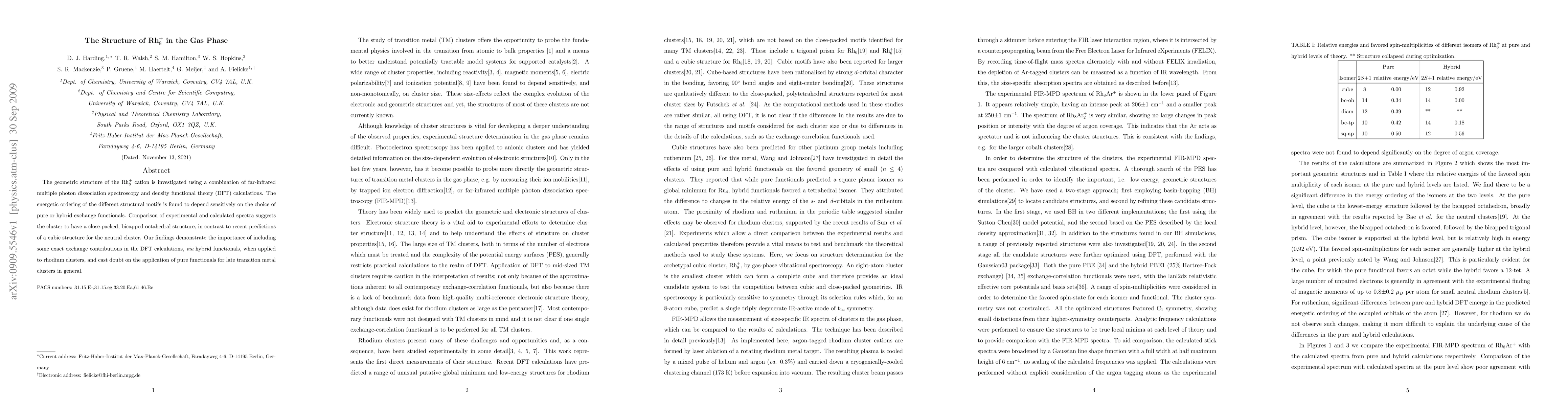 The geometric structure of the Rh$_8^+$ cation is investigated using a combination of far-infrared multiple photon dissociation spectroscopy and density functional theory (DFT) calculations. The energetic ordering of the different structural motifs is found to depend sensitively on the choice of pure or hybrid exchange functionals. Comparison of experimental and calculated spectra suggests the cluster to have a close-packed, bicapped octahedral structure, in contrast to recent predictions of a cubic structure for the neutral cluster. Our findings demonstrate the importance of including some exact exchange contributions in the DFT calculations, via hybrid functionals, when applied to rhodium clusters, and cast doubt on the application of pure functionals for late transition metal clusters in general.