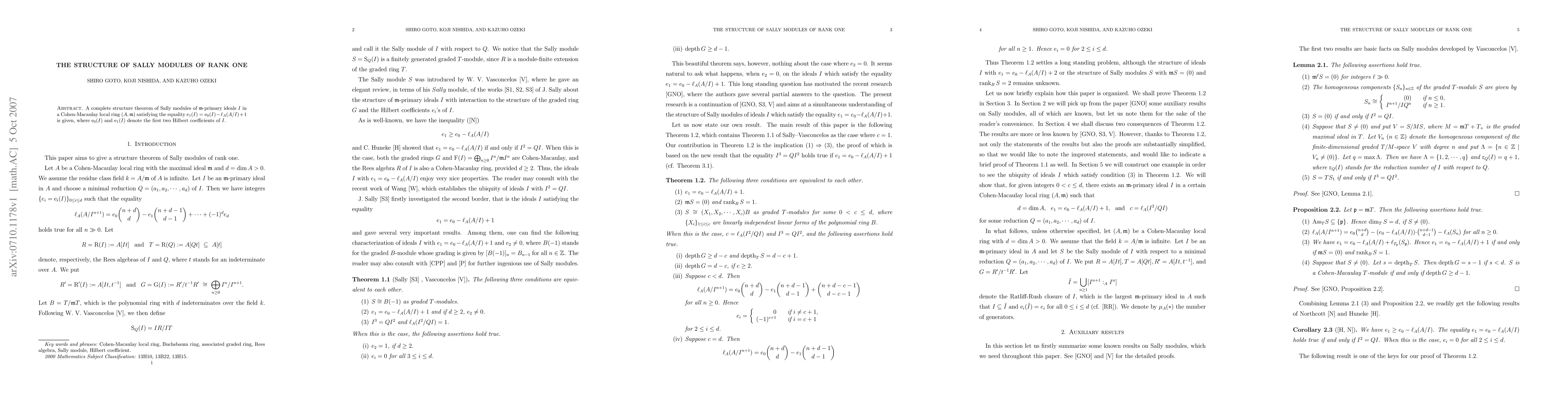 The paper provides a comprehensive structure theorem for Sally modules of $\fkm$-primary ideals in Cohen-Macaulay local rings under the condition $\e_1(I)=\e_0(I)-\ell_A(A/I)+1$. This elucidates the relationship between the Hilbert coefficients and the module's structure.