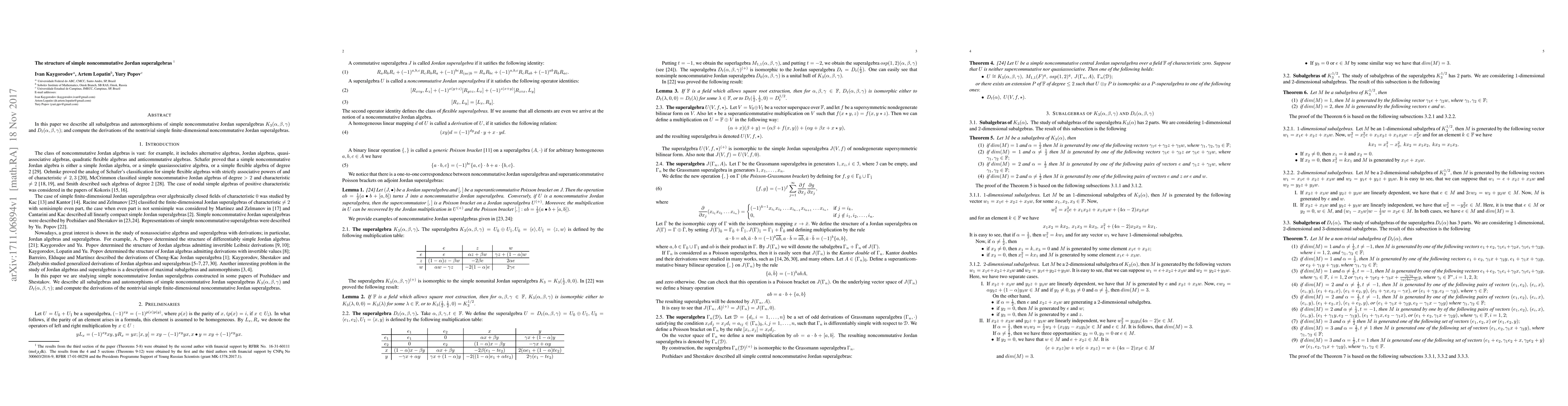 Summary: This paper classifies subalgebras, automorphisms, and derivations of the simple noncommutative Jordan superalgebras $K_3(\alpha,\beta,\gamma)$ and $D_t(\alpha,\beta,\gamma)$, providing a comprehensive structural analysis of these finite-dimensional algebras.