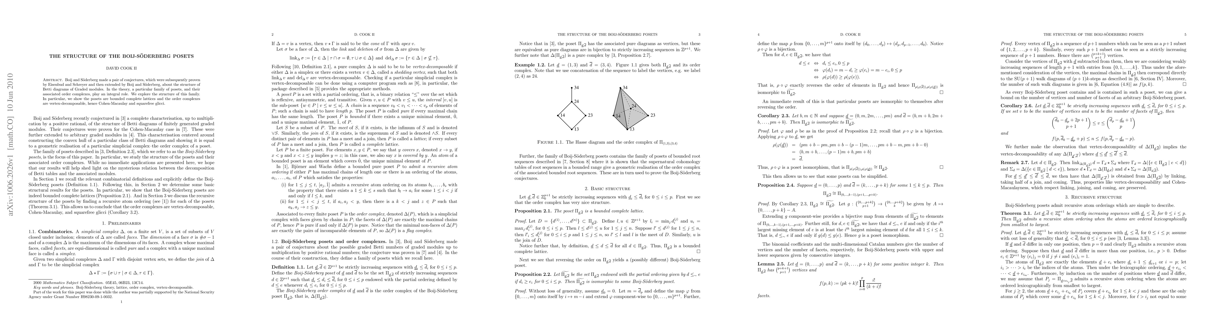 Boij and S\"oderberg made a pair of conjectures, which were subsequently proven by Eisenbud and Schreyer and then extended by Boij and S\"oderberg, about the structure of Betti diagrams of Graded modules. In the theory, a particular family of posets, and their associated order complexes, play an integral role. We explore the structure of this family. In particular, we show the posets are bounded complete lattices and the order complexes are vertex-decomposable, hence Cohen-Macaulay and squarefree glicci.