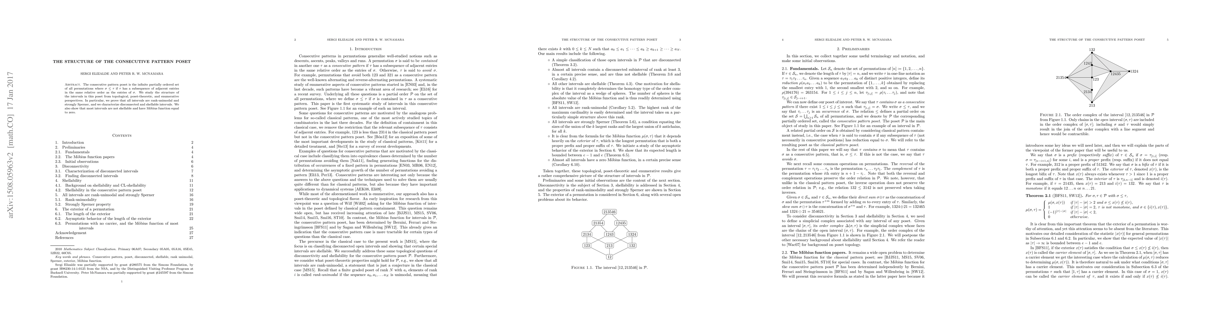 This paper investigates the consecutive pattern poset of permutations, proving all intervals are rank-unimodal and strongly Sperner. It characterizes disconnected and shellable intervals, while showing most intervals are not shellable and have a zero M\"obius function.