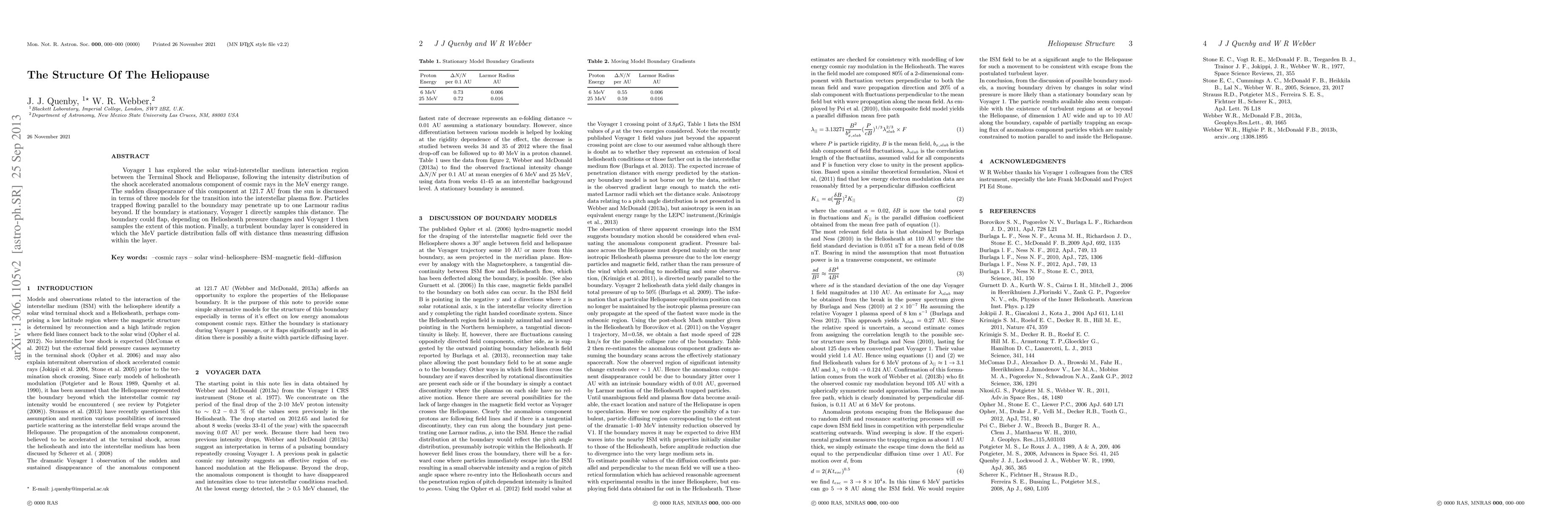 Voyager 1 has explored the solar wind-interstellar medium interaction region between the Terminal Shock and the Heliopause, following the intensity distribution of the shock accelerated anomalous component of cosmic rays in the MeV energy range. The sudden disappearance of this component at 121.7 AU from the sun is discussed in terms of three models for the transition into the interstellar plasma flow. Particles trapped flowing parallel to the boundary may penetrate up to one Larmour radius beyond. If the boundary is stationary, Voyager 1 directly samples this distance. The boundary could flap, depending on Heliosheath pressure changes and Voyager 1 then samples the extent of this motion. Finally, a turbulent boundary layer is considered in which the MeV particle distribution falls off with distance, thus measuring diffusion within the layer.