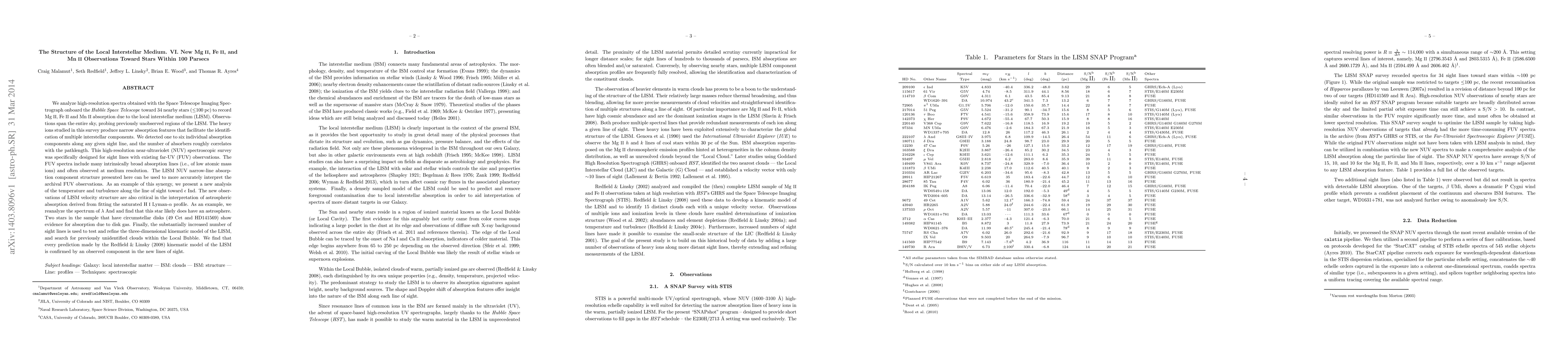 We analyze high-resolution spectra obtained with the Space Telescope Imaging Spectrograph onboard the Hubble Space Telescope toward 34 nearby stars (<100 pc) to record MgII, FeII and MnII absorption due to the local interstellar medium (LISM). Observations span the entire sky, probing previously unobserved regions of the LISM. We detected one to six individual absorption components along any given sight line, and the number of absorbers roughly correlates with the pathlength. This high-resolution near-ultraviolet (NUV) spectroscopic survey was specifically designed for sight lines with existing far-UV (FUV) observations. The FUV spectra include many intrinsically broad absorption lines (i.e., of low atomic mass ions) and often observed at medium resolution. The LISM NUV narrow-line absorption component structure presented here can be used to more accurately interpret the archival FUV observations. As an example of this synergy, we present a new analysis of the temperature and turbulence along the line of sight toward epsilon Ind. The new observations of LISM velocity structure are also critical in the interpretation of astrospheric absorption derived from fitting the saturated HI Lyman-alpha profile. As an example, we reanalyze the spectrum of lambda And and find that this star likely does have an astrosphere. Two stars in the sample that have circumstellar disks (49 Cet and HD141569) show evidence for absorption due to disk gas. Finally, the substantially increased number of sight lines is used to test and refine the three-dimensional kinematic model of the LISM, and search for previously unidentified clouds within the Local Bubble. We find that every prediction made by the Redfield & Linsky (2008) kinematic model of the LISM is confirmed by an observed component in the new lines of sight.